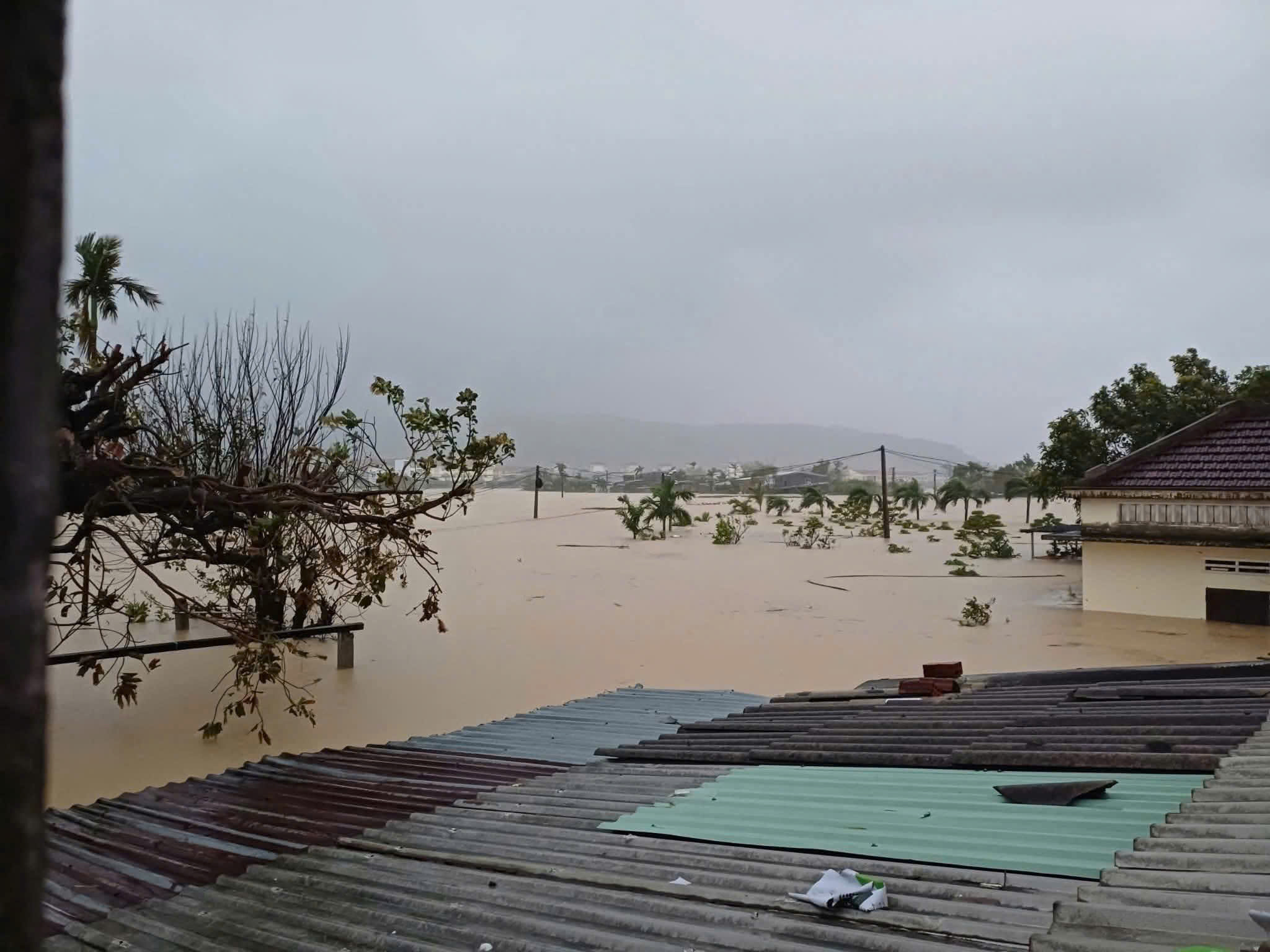 In Gia Lai, surging waters from the Ha Thanh River submerged many residential areas in Quy Nhon Bac ward. Some areas were submerged over 2m deep, forcing hundreds of people to climb onto rooftops and mezzanines, calling for help.