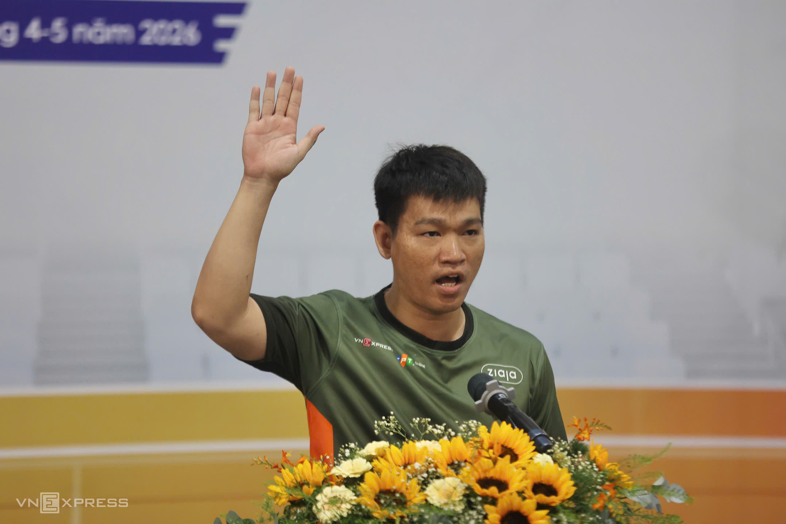 Nguyen Thi Thu Ngan (Tay Thanh High School), representing the athletes participating in the VnExpress youth basketball tournament 2026 – Ziaja cup in Ho Chi Minh City, swore an oath to strictly abide by the tournament regulations, respect the decisions of the organizing committee and referees, and compete with honesty and sportsmanship.
