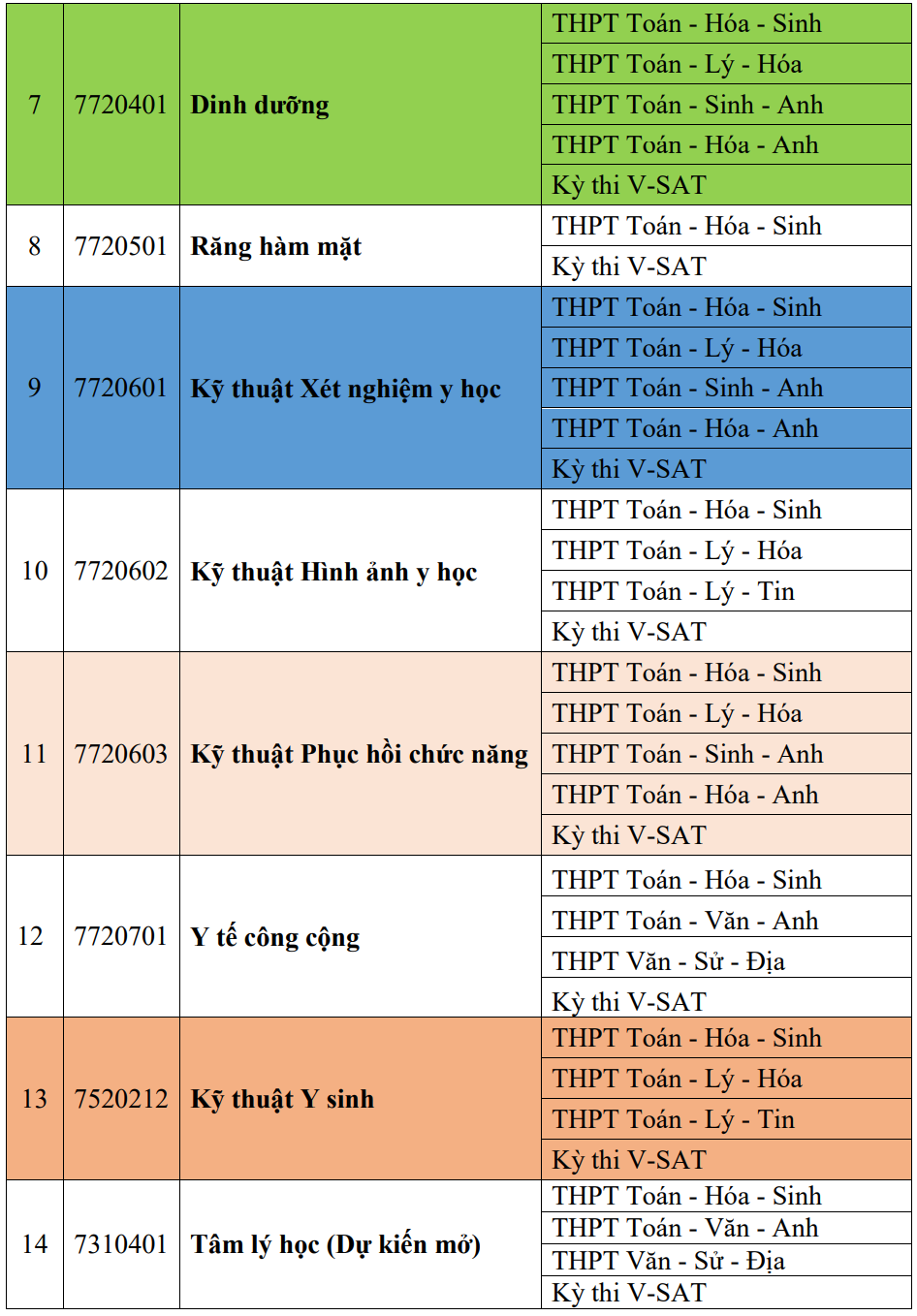 The specific admission combinations and methods for each program at Can Tho University of Medicine and Pharmacy for 2026 are as follows: