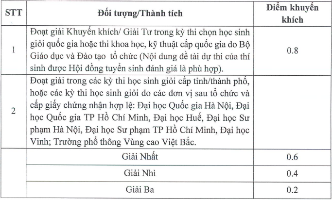 Candidates who have won awards in provincial-level or higher excellent student competitions will receive bonus points ranging from 0,2 to 0,8 added to their total admission score. The specific bonus point allocation is as follows: