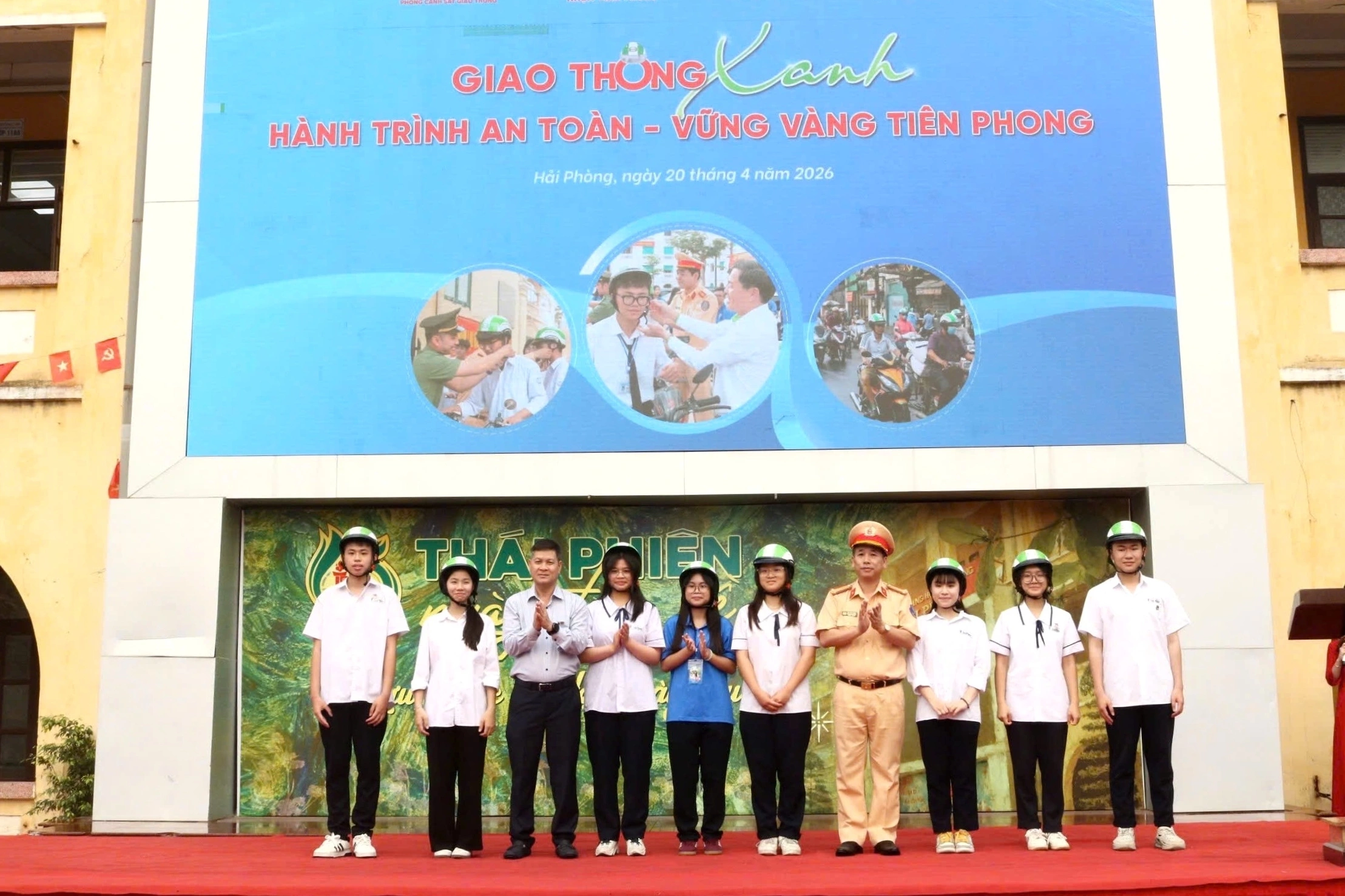 On the morning of 20/4, the Traffic Police Department, Hai Phong Security Thematic Board, and Tien Phong Youth Plastic Joint Stock Company launched the "Green Traffic - Safe Journey - Steadfast Pioneering" program at Thai Phien High School.