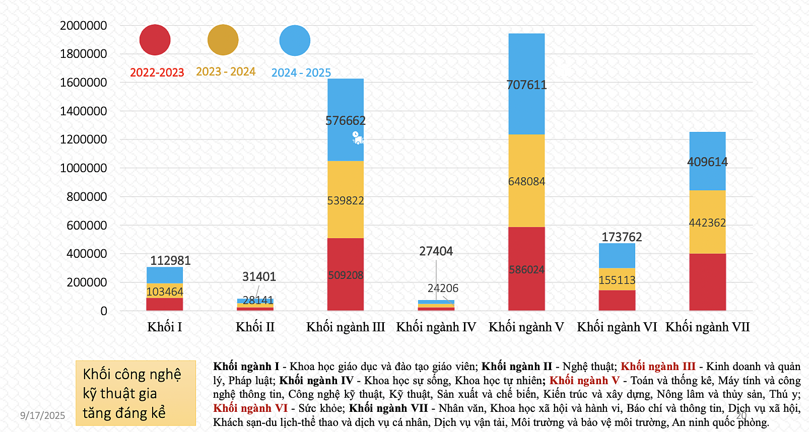 Last academic year, over 707,600 students enrolled in this block, an 18% increase compared to two years prior. This represents a "significant increase," according to the MOET. Strategic technology and key engineering fields like Cybersecurity, Semiconductors, and Artificial Intelligence have "shown promising growth" with over 243,500 students.