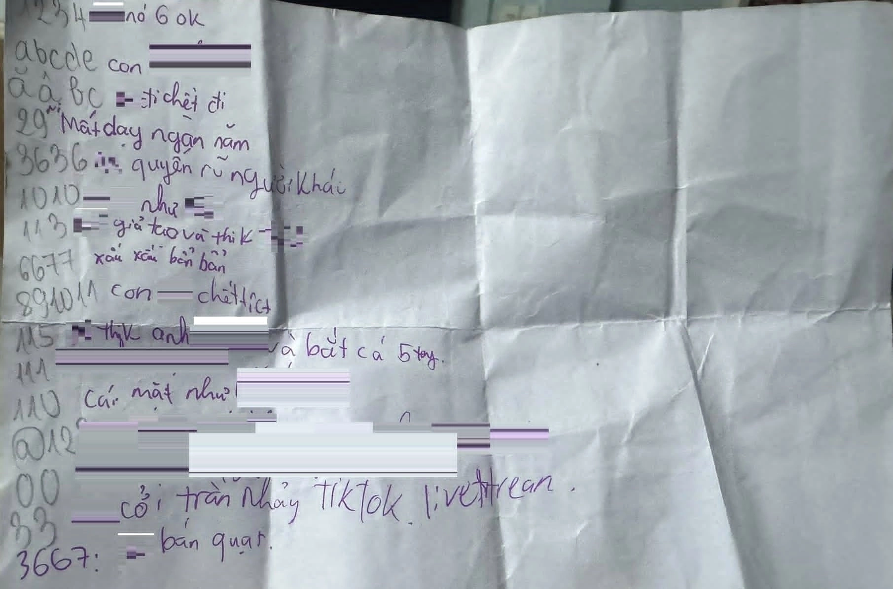 According to Ms. Thanh, the group isolated her daughter, then passed around several pieces of paper, with each student writing an insulting and abusive sentence. To avoid detection, each sentence included a code number instead of the writer's name. Since reading the letters, Ms. Thanh's daughter has felt ashamed and afraid of her friends finding out, leading her to want to quit school.