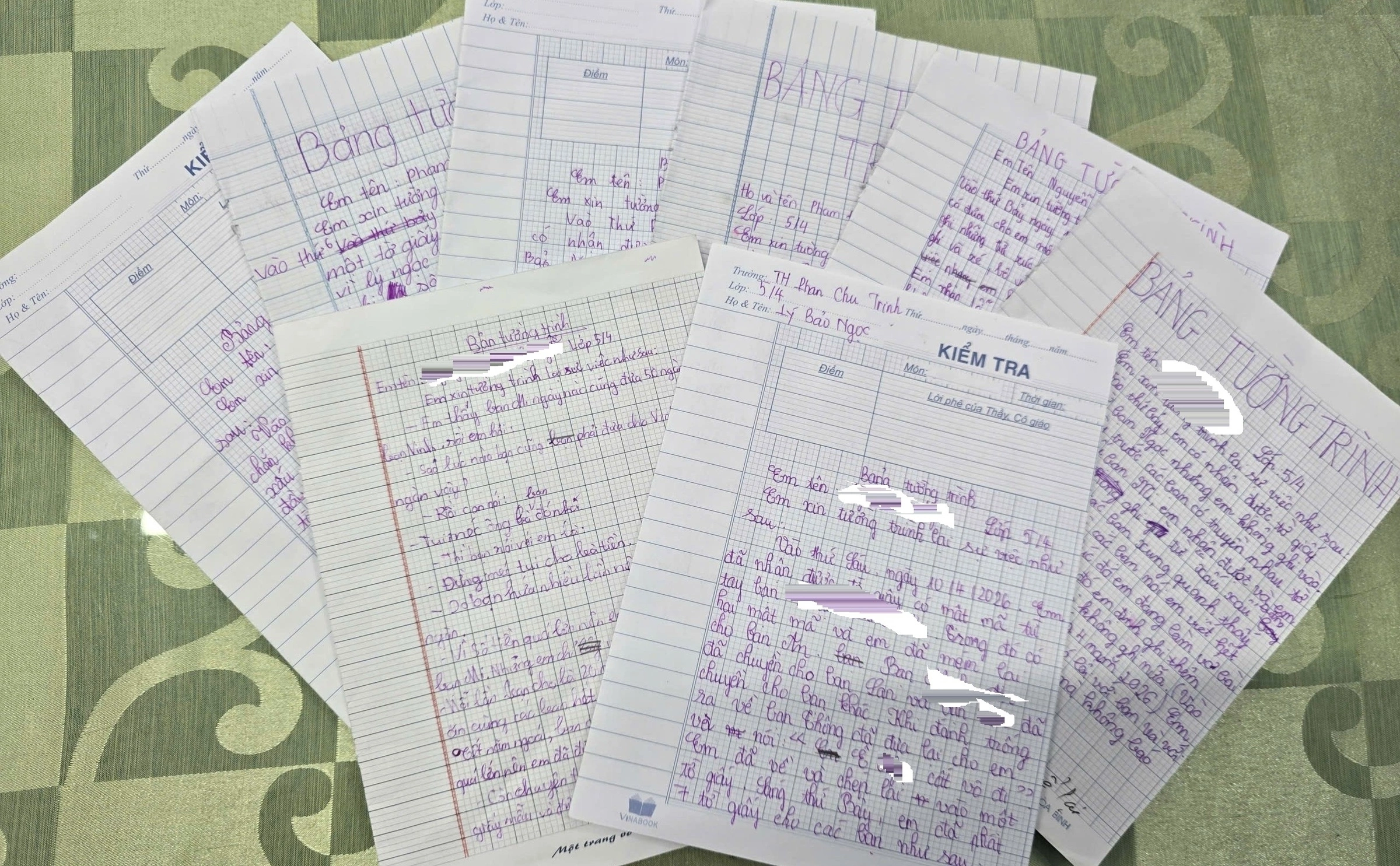 The written statements of the students involved in the incident. *Photo: Hoang Nguyen* |