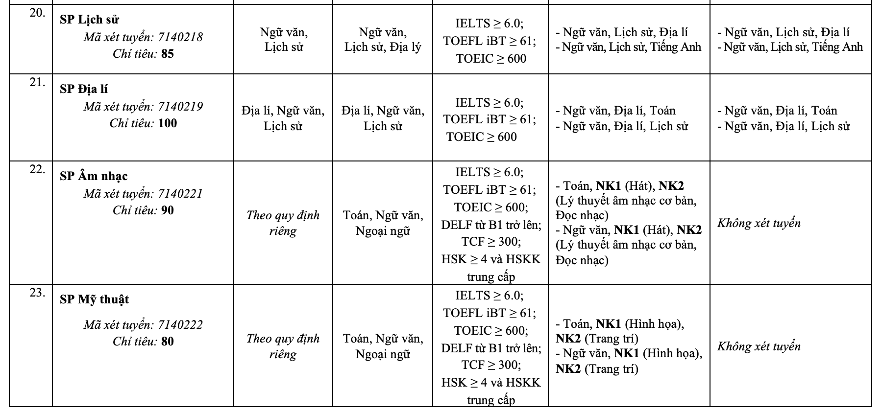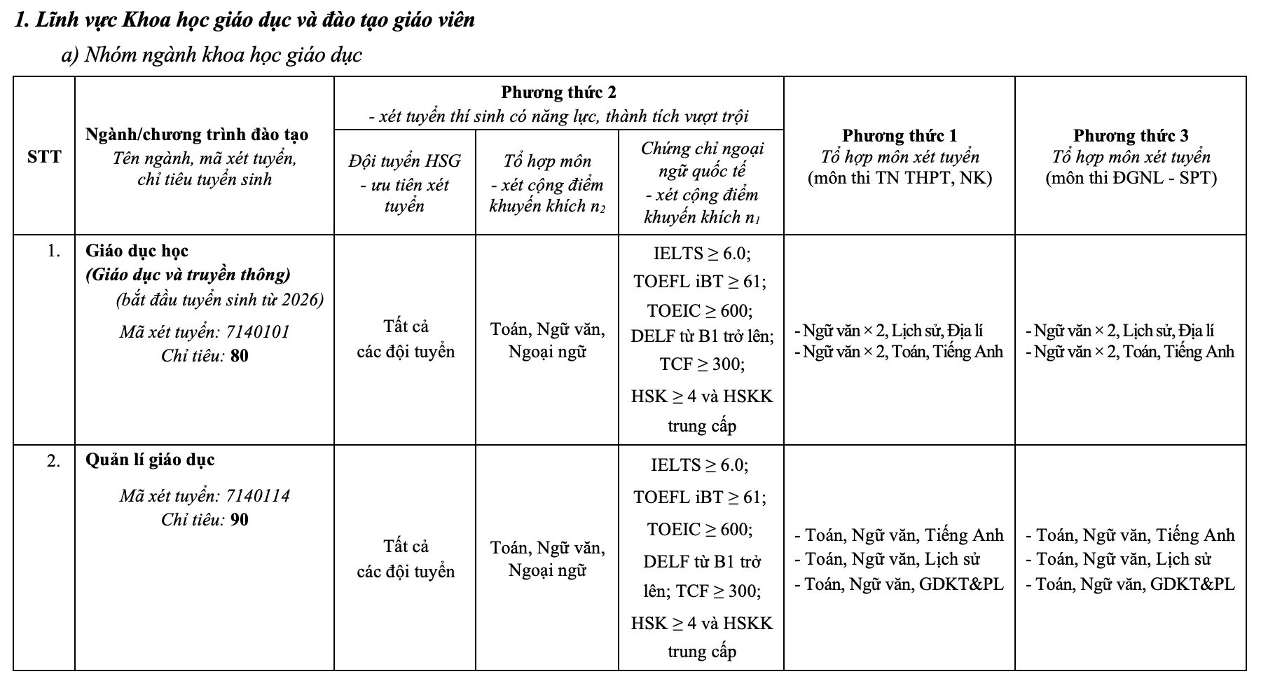 Admission quotas and methods for Hanoi National University of Education in 2026, by major, are as follows: