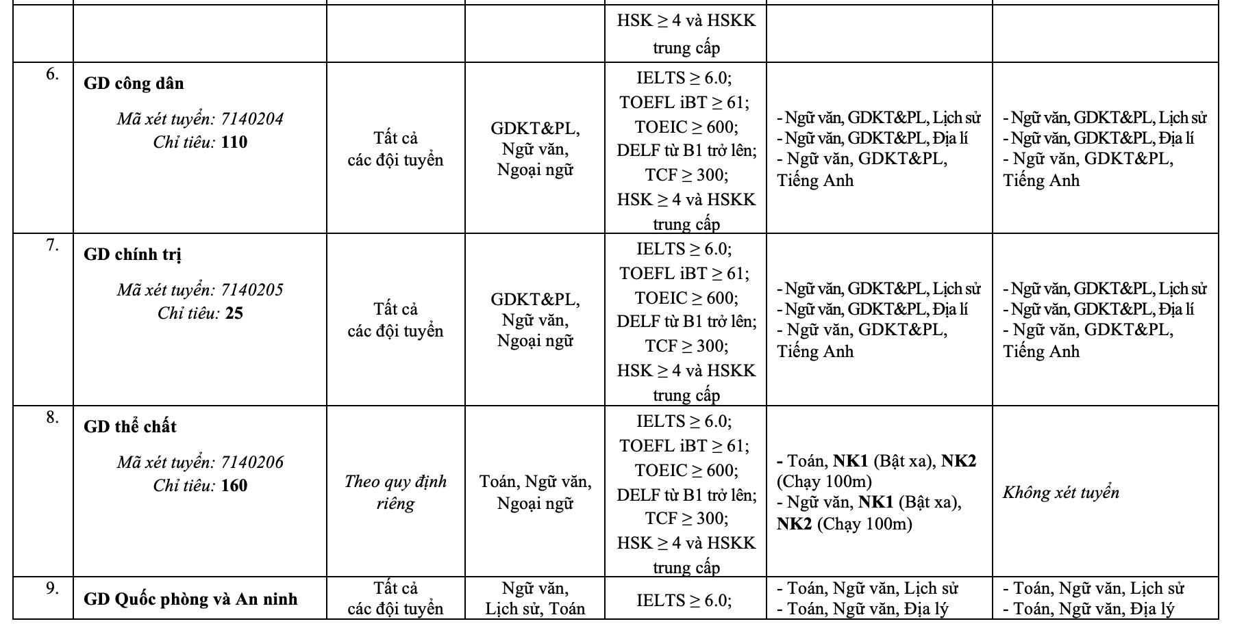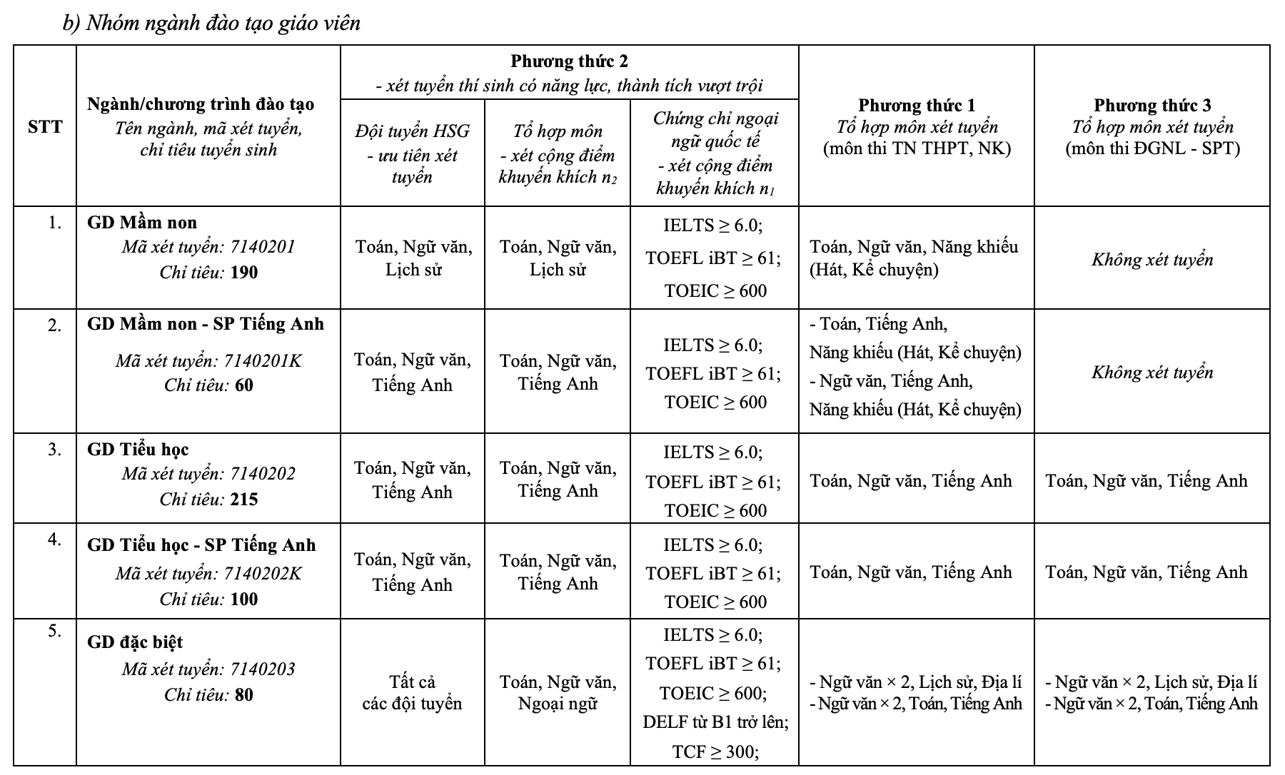 For candidates with exceptional abilities and achievements, the university divides them into three groups. The first group includes those with good academic and training scores for three years of high school, who also meet one of the following conditions: studying at schools affiliated with Hanoi National University of Education and TP HCM or specialized high schools, achieving a third prize in provincial/university-level excellent student competitions, or science and technology competitions.