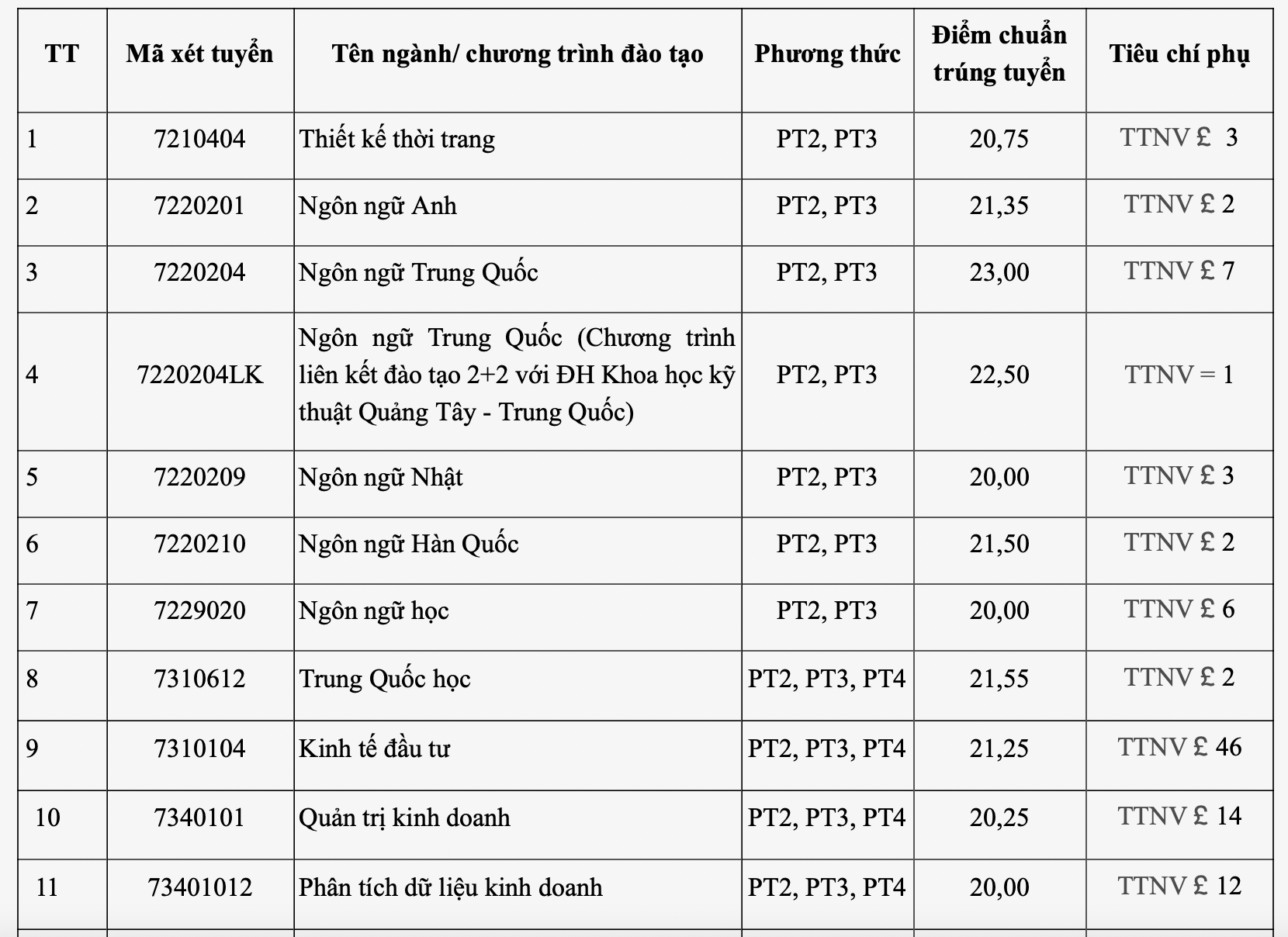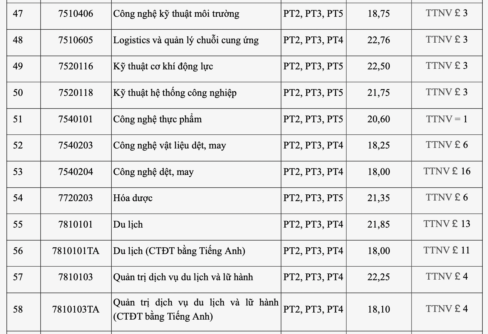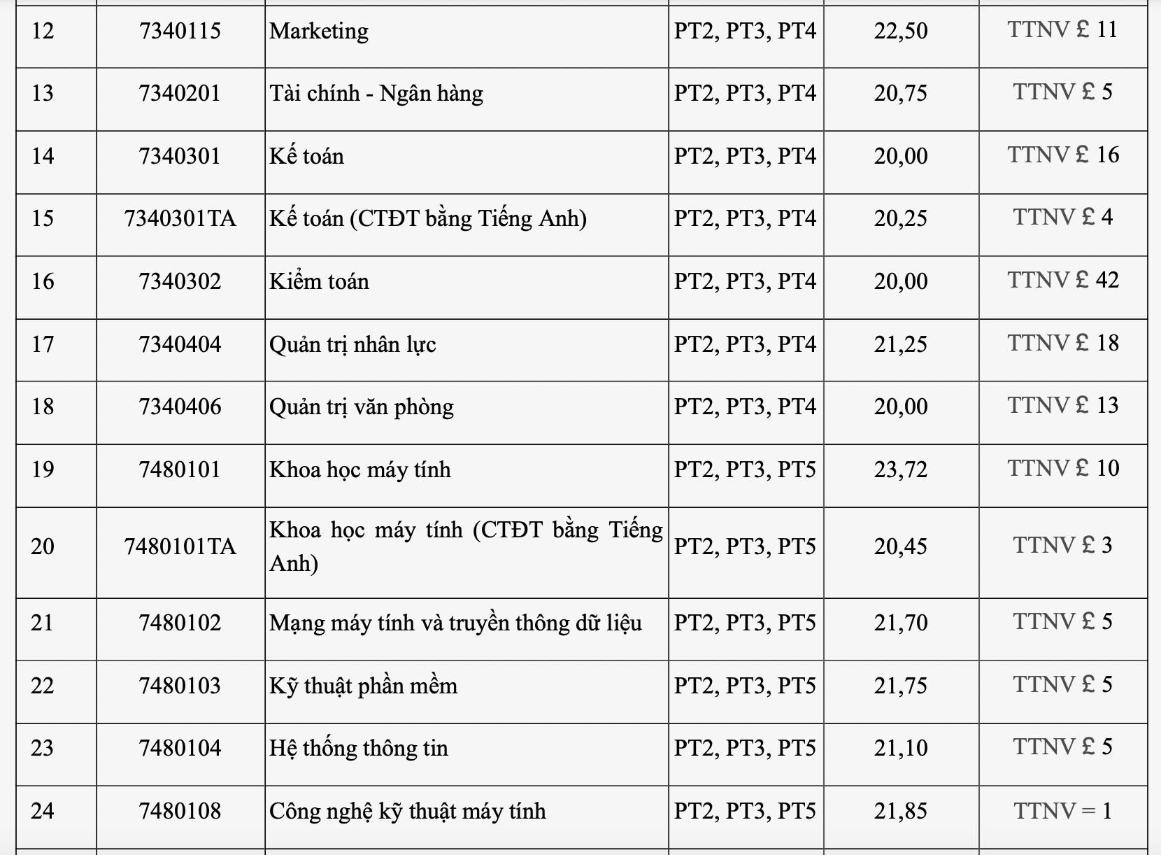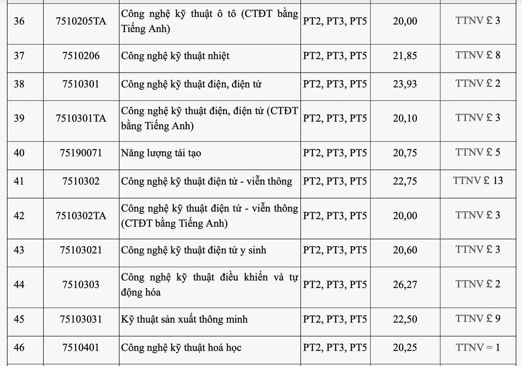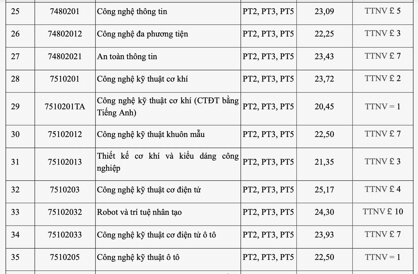 The complete list of HaUI's 2025 admission scores for all programs is as follows: