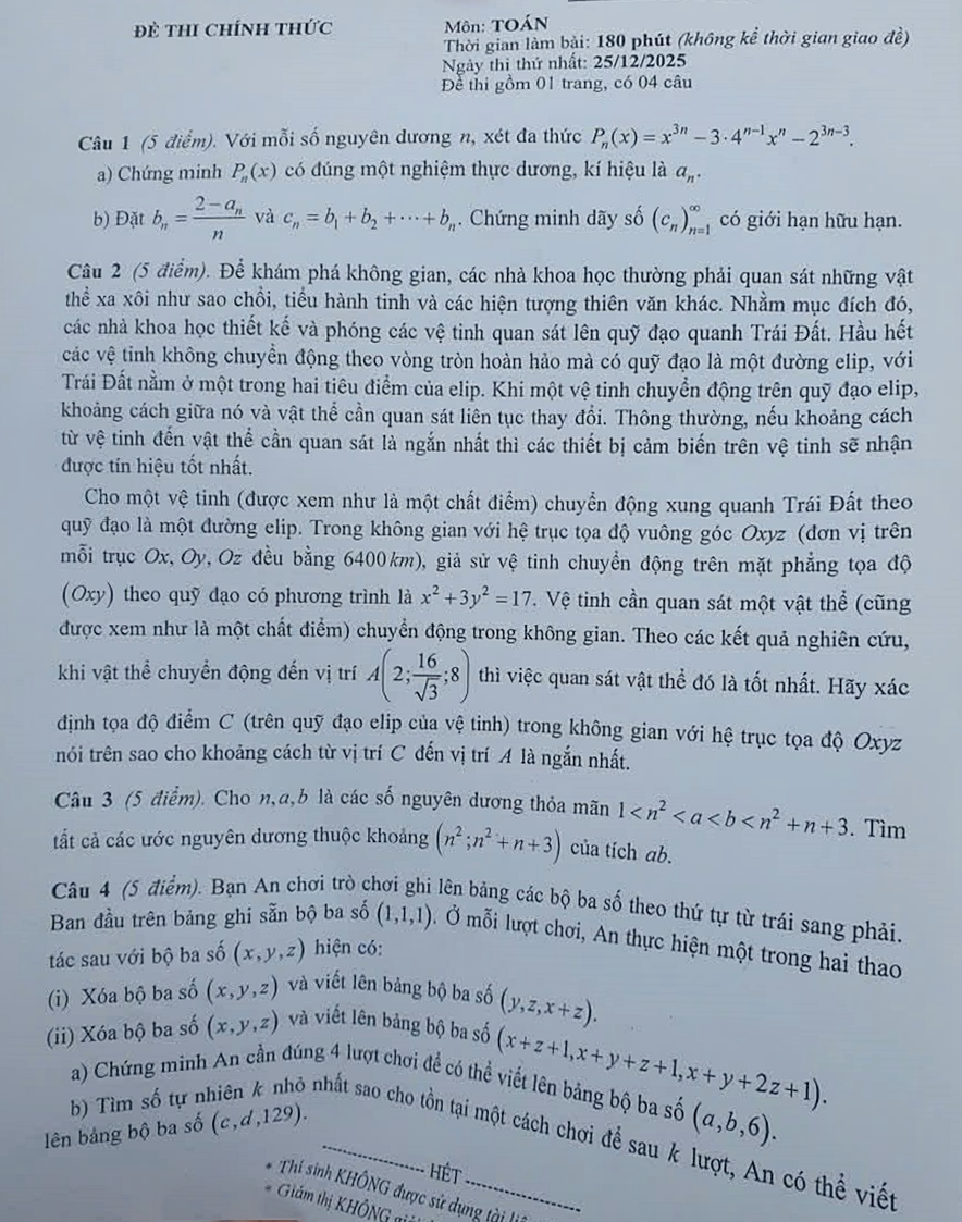 On 25/12, students in 12 subjects, including math, physics, chemistry, biology, Vietnamese literature, history, geography, English, Russian, French, Chinese, and Japanese, took written exams. Informatics was the only subject with a computer programming exam that day. The following day, 26/12, continued with written exams for math, physics, chemistry, and biology, another computer programming session for informatics, and oral exams for five foreign language subjects.
