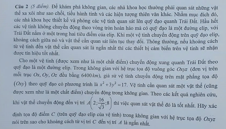 A key point of contention was question 2, worth 5 points, which involved satellite coordinates and was criticized for forcing real-world elements into the problem. The question provided information on using satellites for space exploration, asking candidates to calculate the distance between two points on a coordinate axis. However, Nguyen Song Minh argued that the physics element was "unrealistic," as the given data would imply the satellite would crash into Earth.