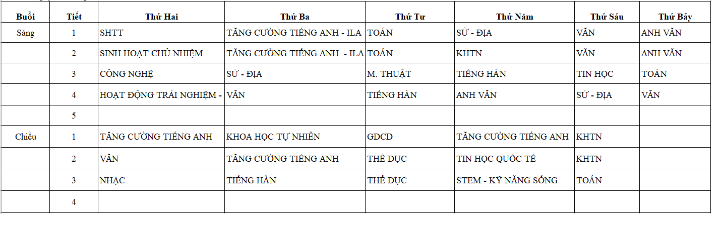 This is why some schools still manage to fit their curriculum within 10 sessions, without extending to Saturday mornings. For example, the schedules of Nguyen Van Luong Secondary School (Binh Phu ward) and Nguyen Du Secondary School (Ben Thanh ward) have around 34-35 classes per week (4 classes in the morning, 3 in the afternoon).