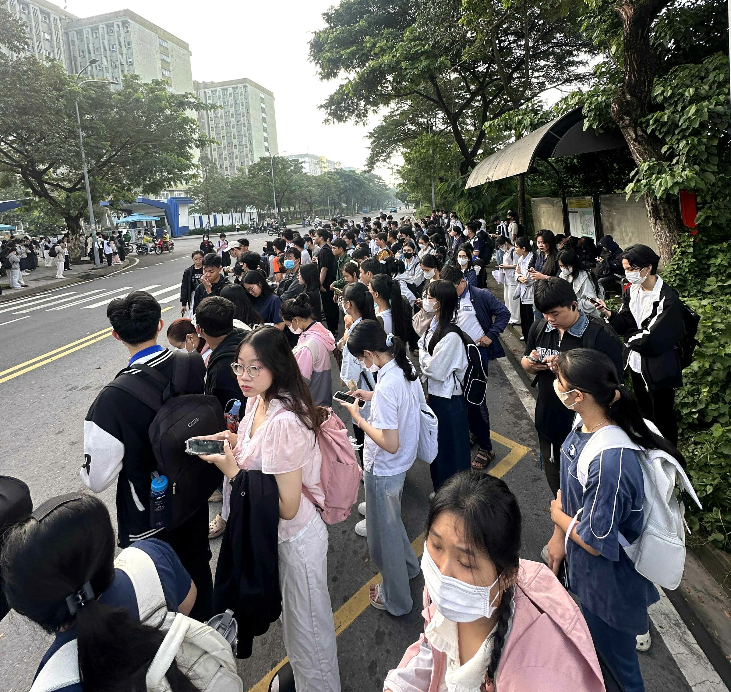 But since mid-August, she has had to wake up an hour earlier, waiting for a bus from 5:30 a.m. Phuong, along with hundreds of other students, stands in long lines spilling onto the road, waiting for bus 53 or 99 to Zone A.