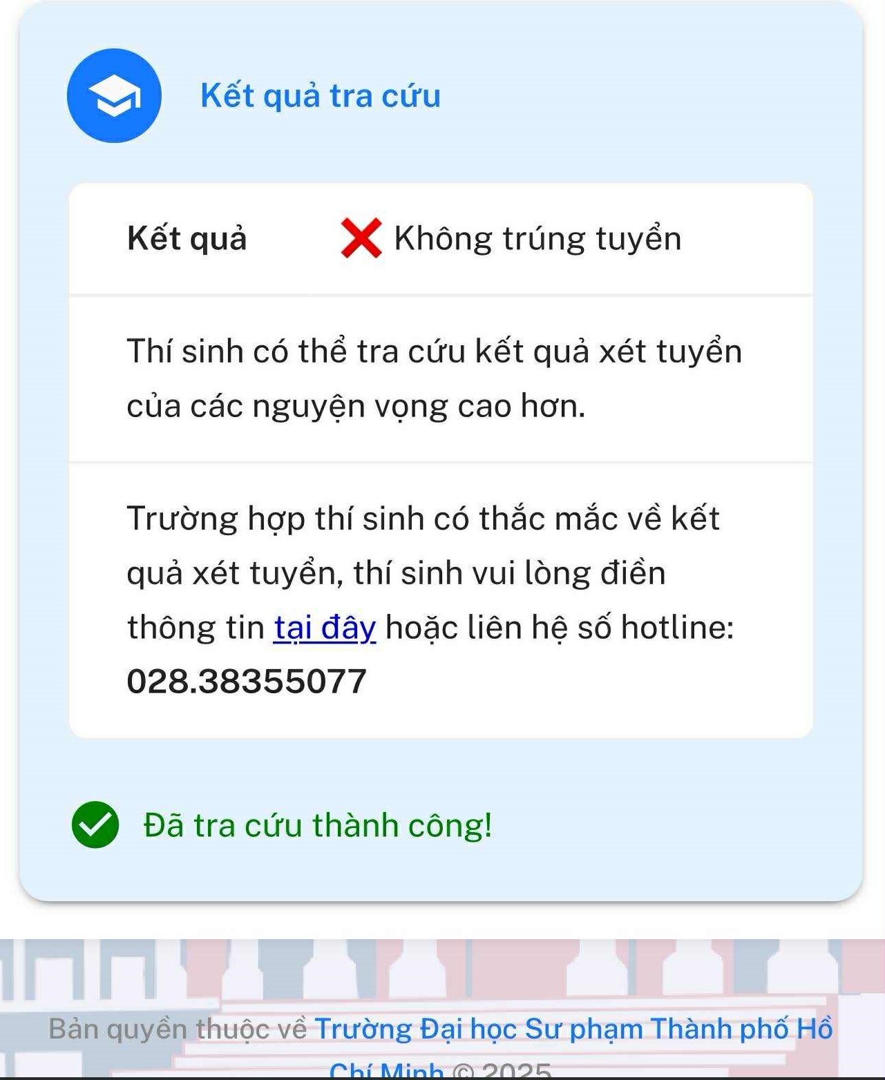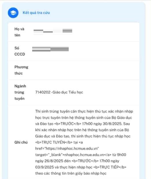 Both universities' websites, however, indicated that she had been admitted to HCMUE. By the morning of 25/8, the Ministry's system showed that she had been rejected from all her choices.
