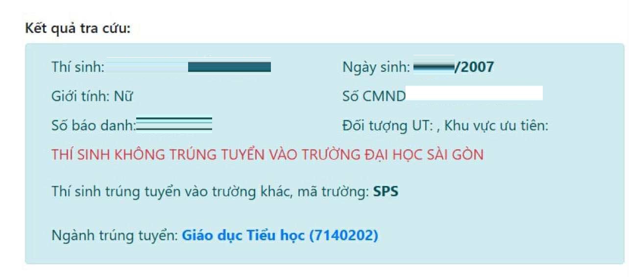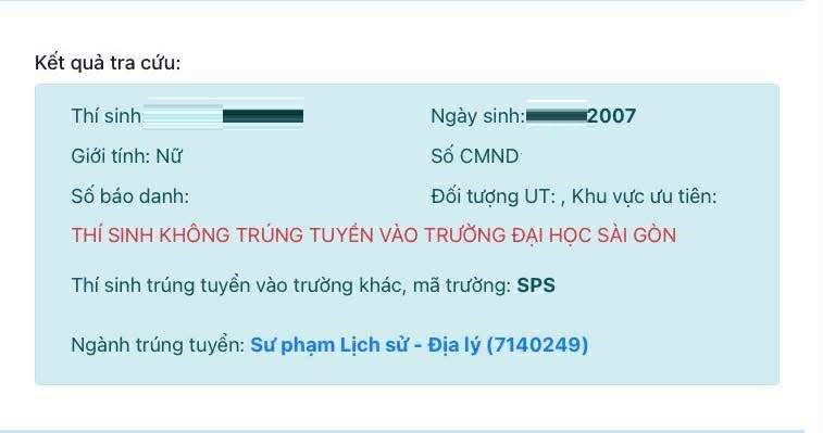 SGU's website on 25/8 showed Thuy Ngan as admitted to HCMUE. Photo: Provided by the student