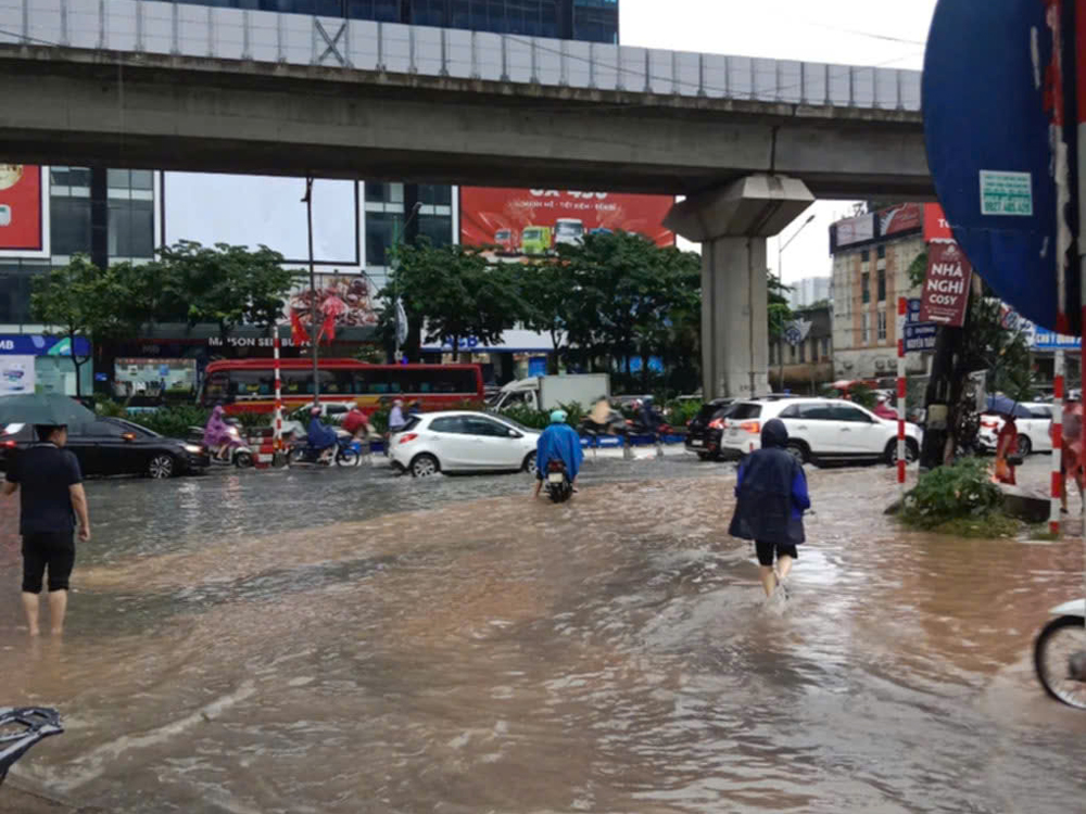 Linh and her mother wade through flooded streets in search of accommodation near the University of Social Sciences and Humanities on August 26th. Photo: Provided by the interviewee