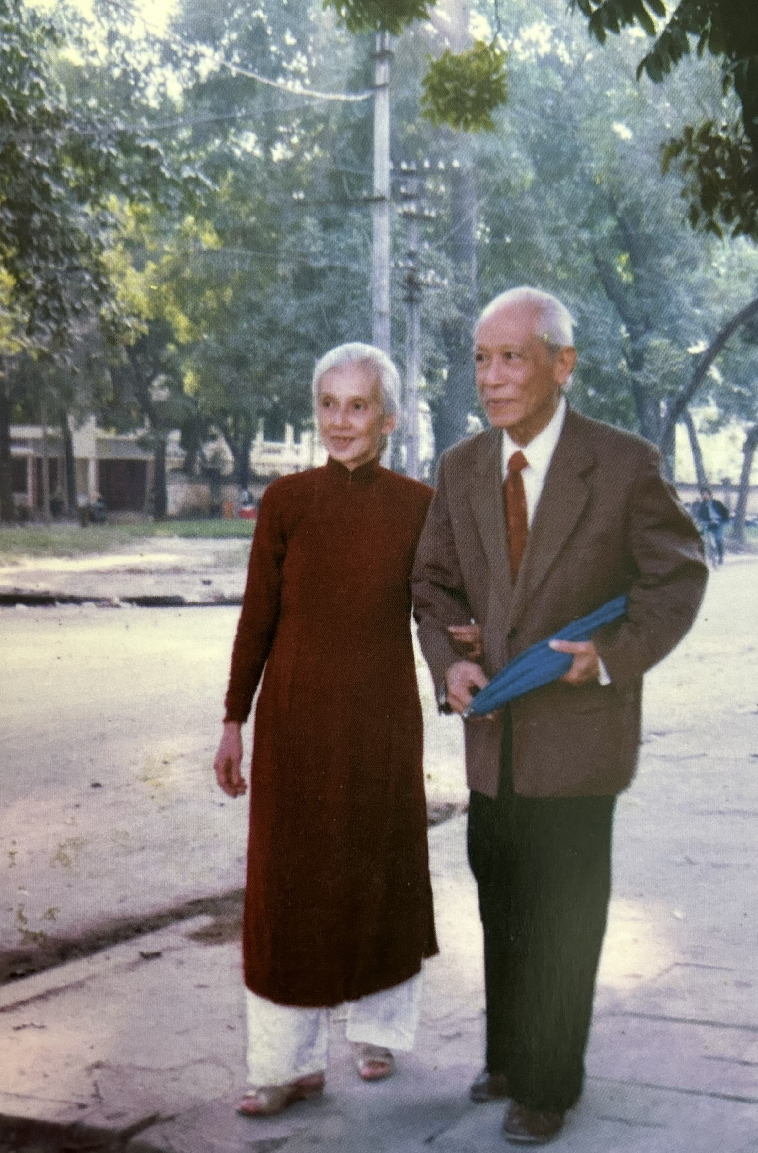 Nhung shared that her father traveled throughout the Viet Bac resistance base on his old bicycle to establish a network of high schools. Once, he was nearly killed by a bomb on the road, and another time, he fell from his bicycle and injured his face. He also compiled physics textbooks for schools.