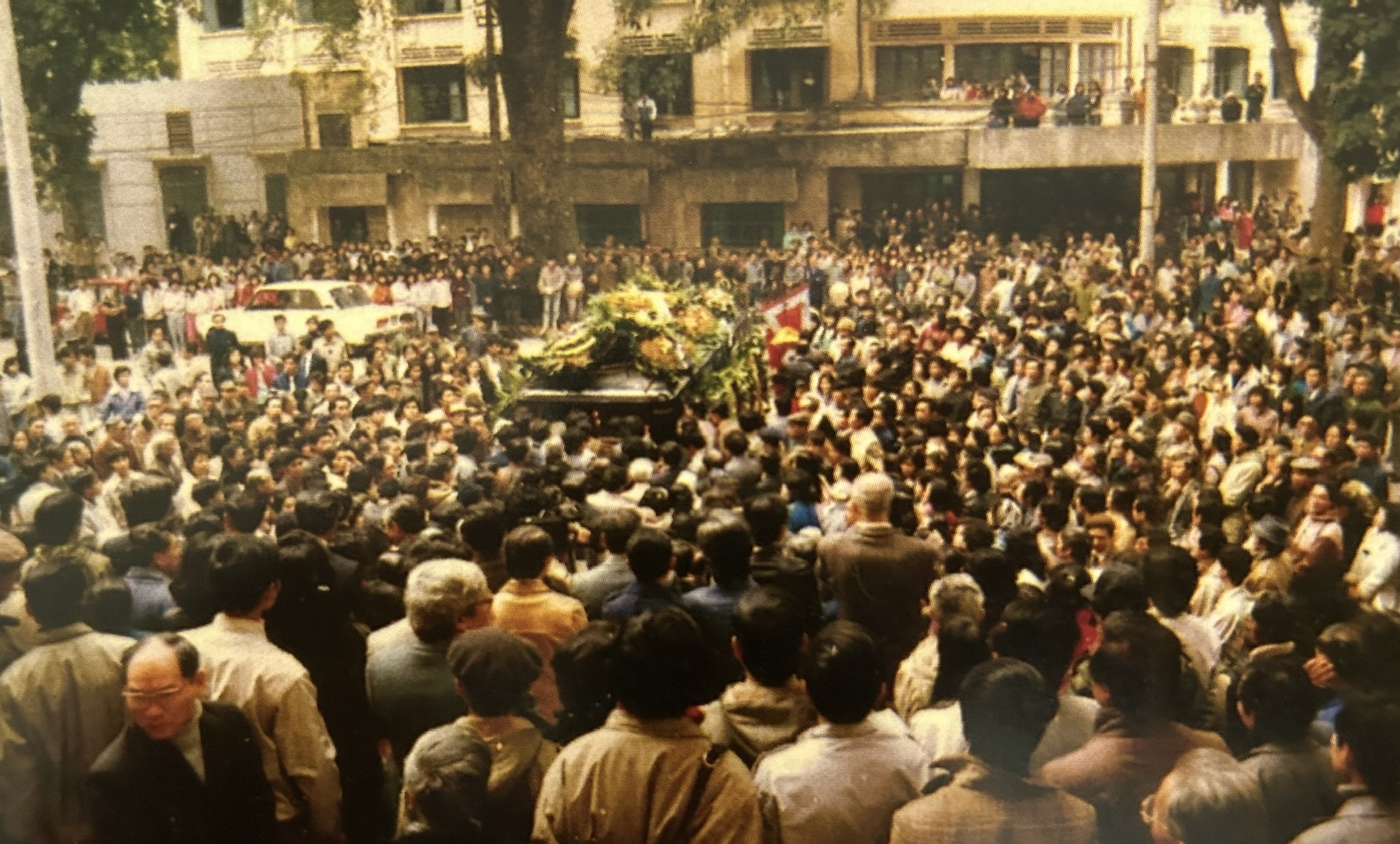 Nhung paused for a long time at the photo of the dense crowd at her father's funeral.