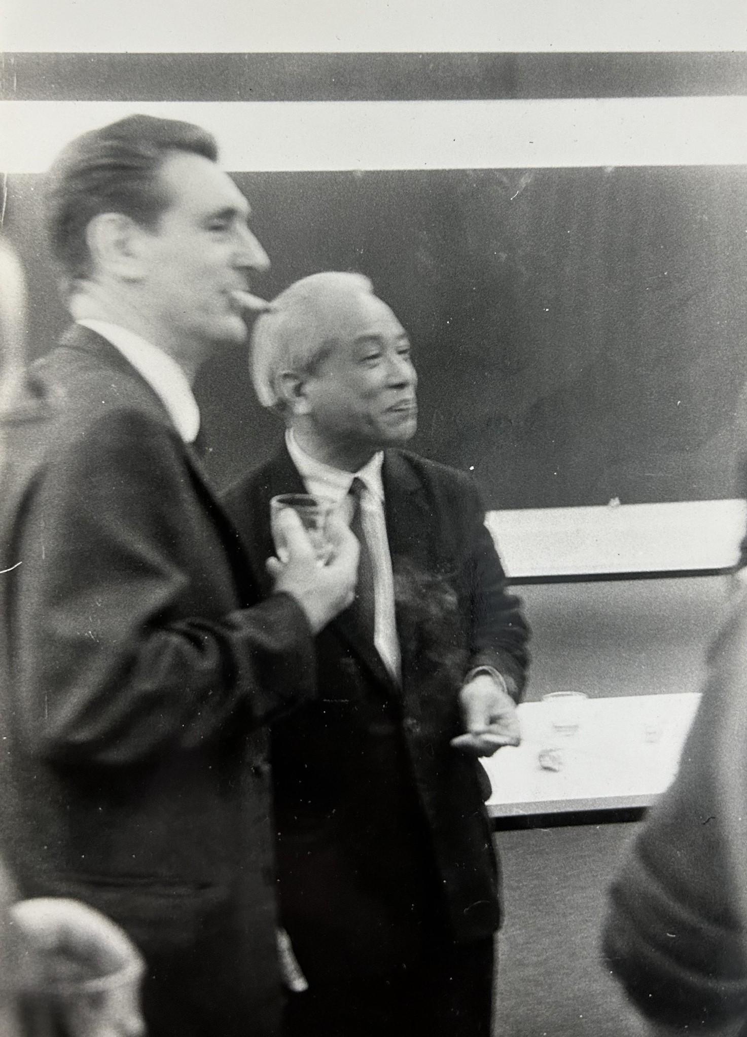 Professor Kontum posing with colleagues (From left: Professor Tran Duc Thao, Le Kha Ke, Vo Thi Tri Tuc, Nguyen Hoan, Ho Dac Di, Vu Nhu Canh).