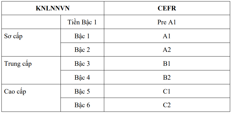 The proposed new foreign language proficiency framework for Vietnam is as follows:
