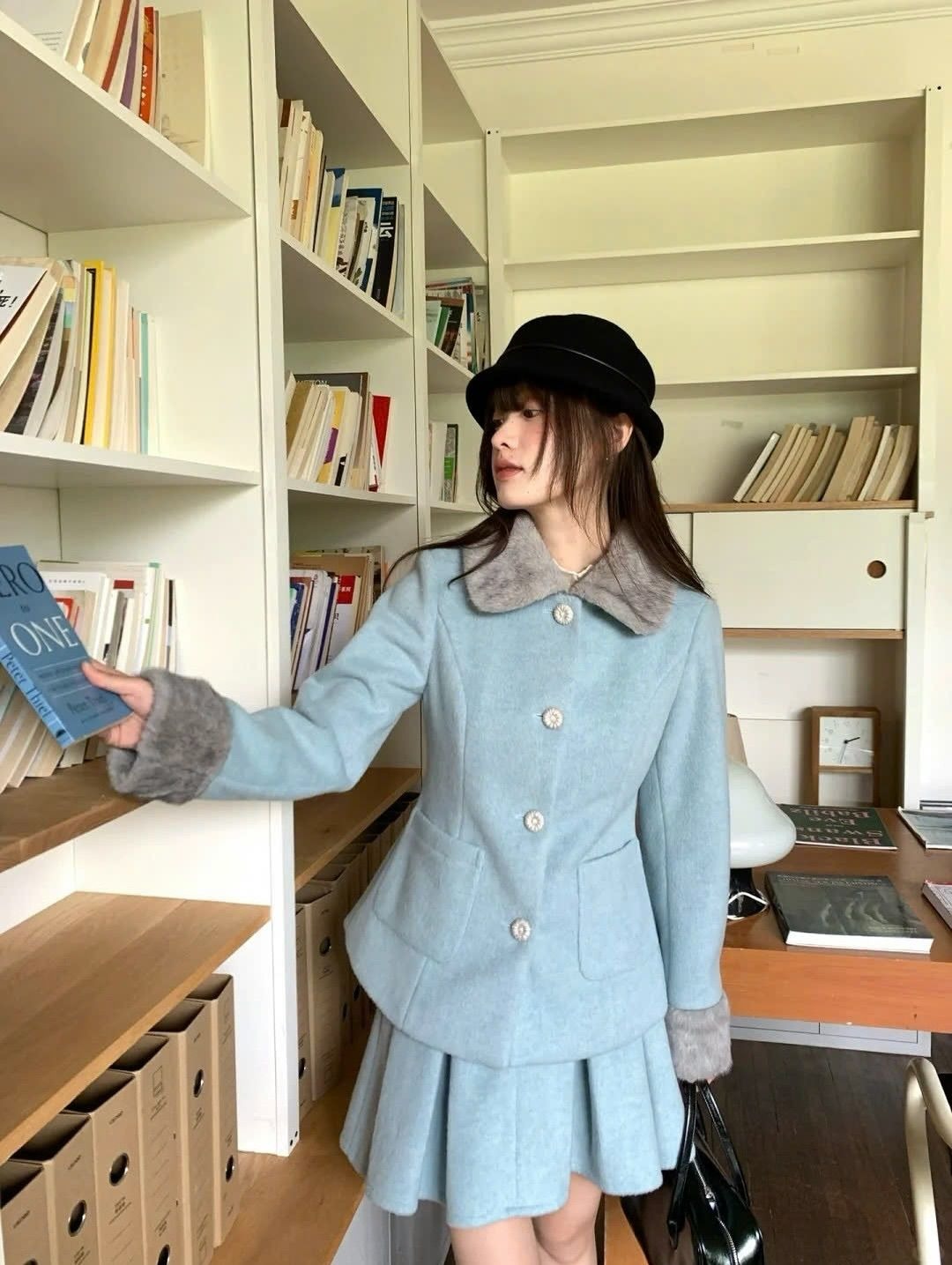 Choosing to wear a matching set with a wool or felt coat and pleated skirt is also an attractive suggestion for office workers. With this set, you can combine it freely with many types of shoes such as pointed high heels, ankle or knee-high boots, or ballet flats. |
