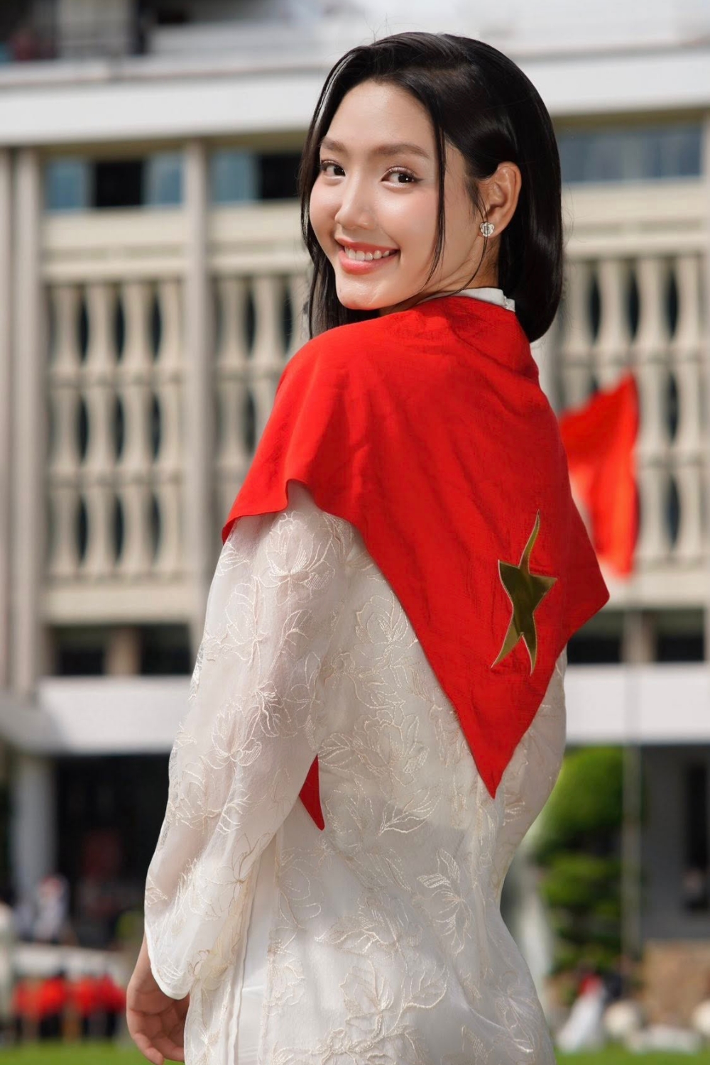 The actress posed for a photo commemorating the 80th National Day at the Independence Palace in 9/2025. She stated that she plans to attend acting workshops and acquire additional skills for long-term career development.