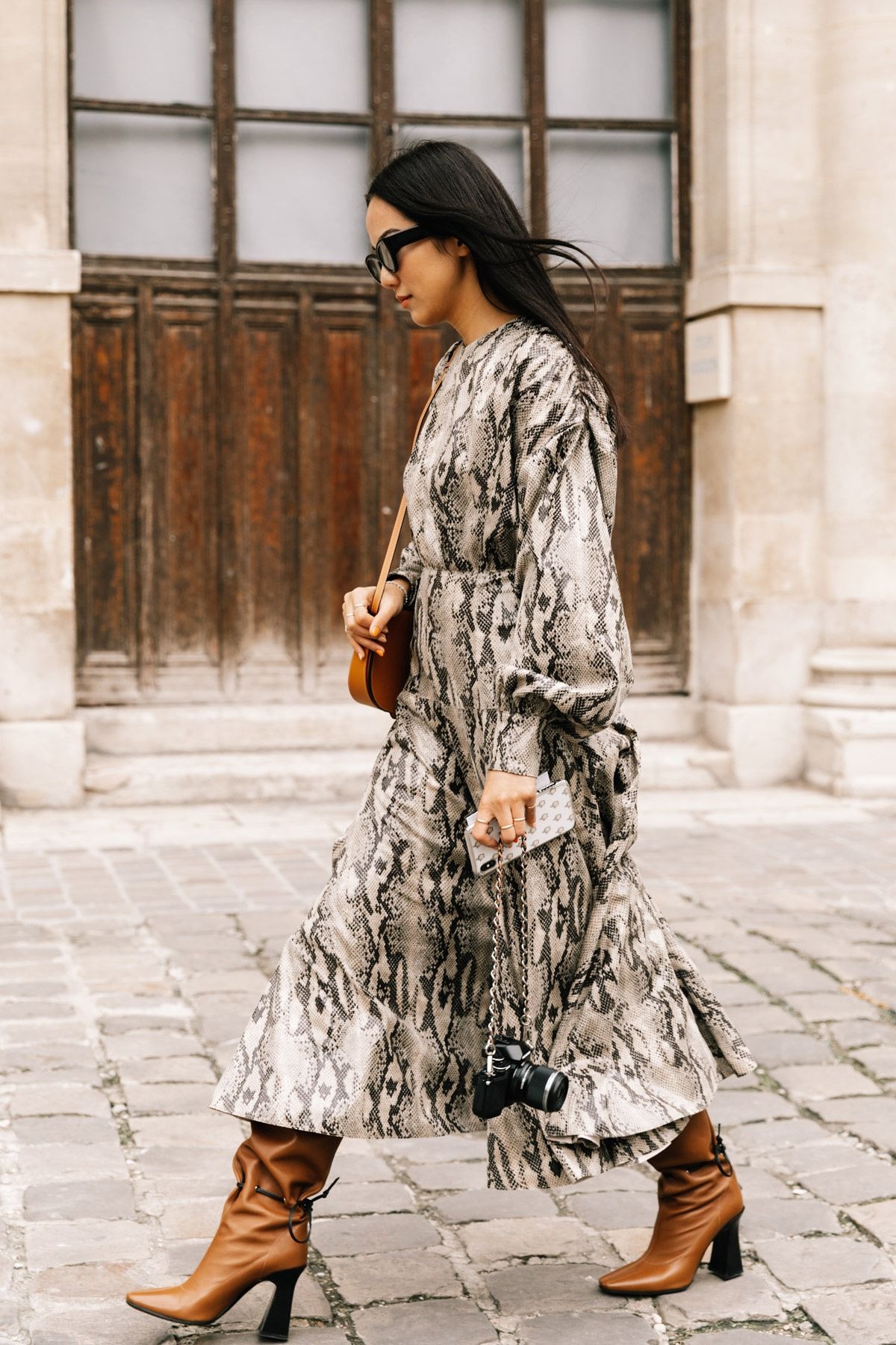 Dresses and tops with animal print patterns, such as snake, tiger, leopard, zebra, and cow prints, are featured not only on clothing but also on handbags and footwear.