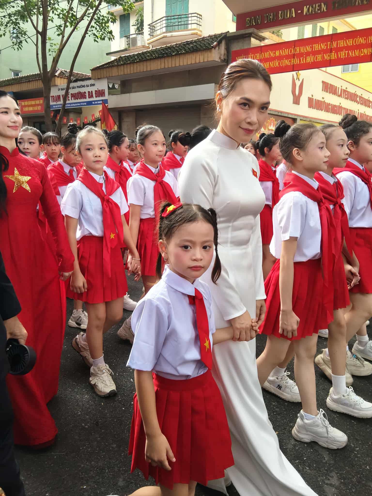 Ha Van Bao, 32, Thuy Tien's father, said that when he received the news that his daughter would perform at the 80th National Day celebration at Ba Dinh Square, he and his family were overjoyed but also worried about the significant task ahead for her. The program's choreographer rigorously selected young singers from numerous clubs, hoping to find a bright face with an innocent voice appropriate for her age.