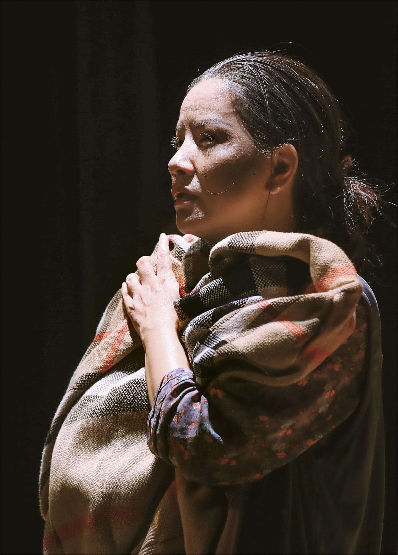 Ngoc Trinh as Mrs. Vy in the play "Cloudy Rain," which won a gold medal at the 2021 National Drama Festival. Photo: Ly Vo Phu Hung