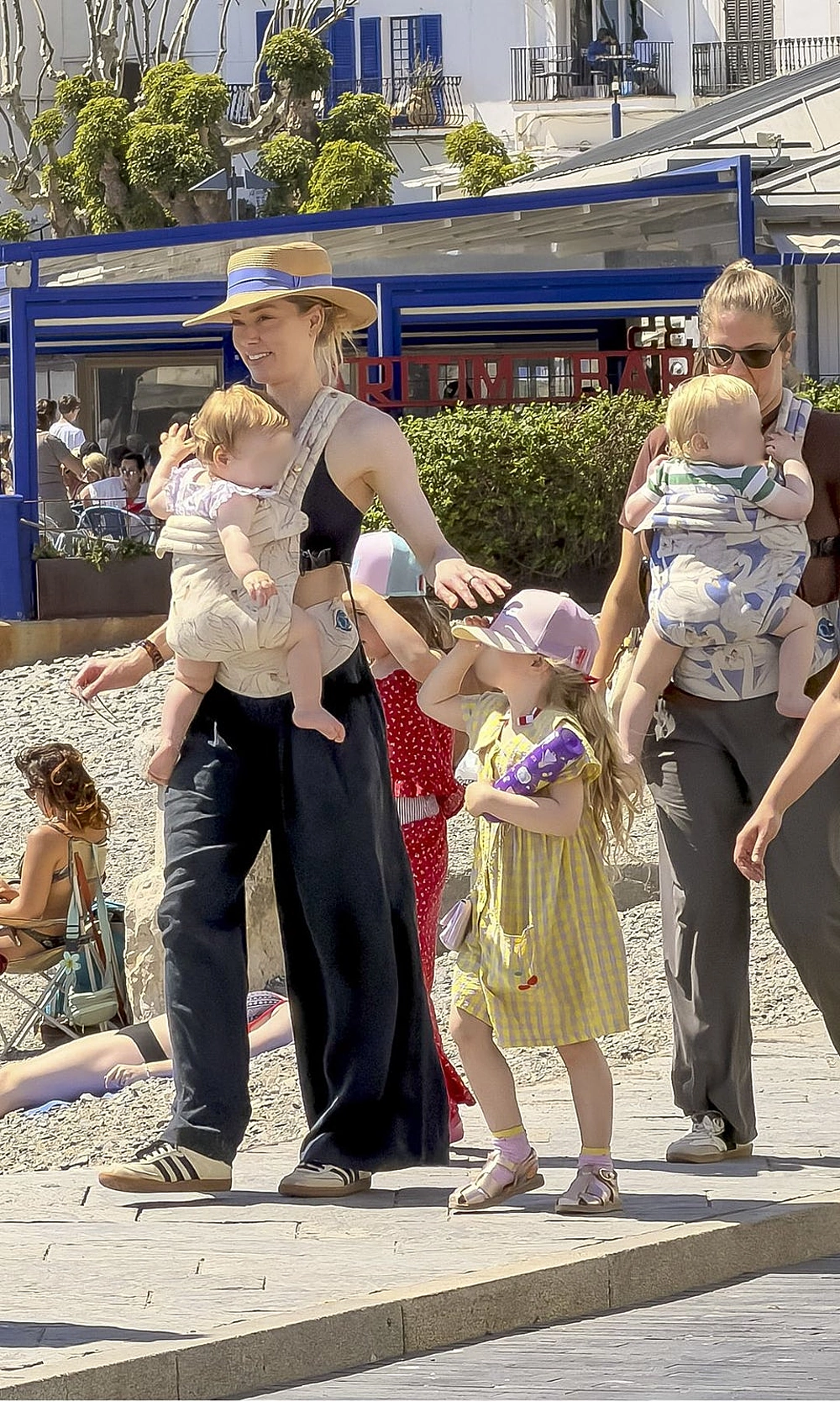 Amber Heard and her children walking through Cadaques port. *Photo: Grosby Group* |