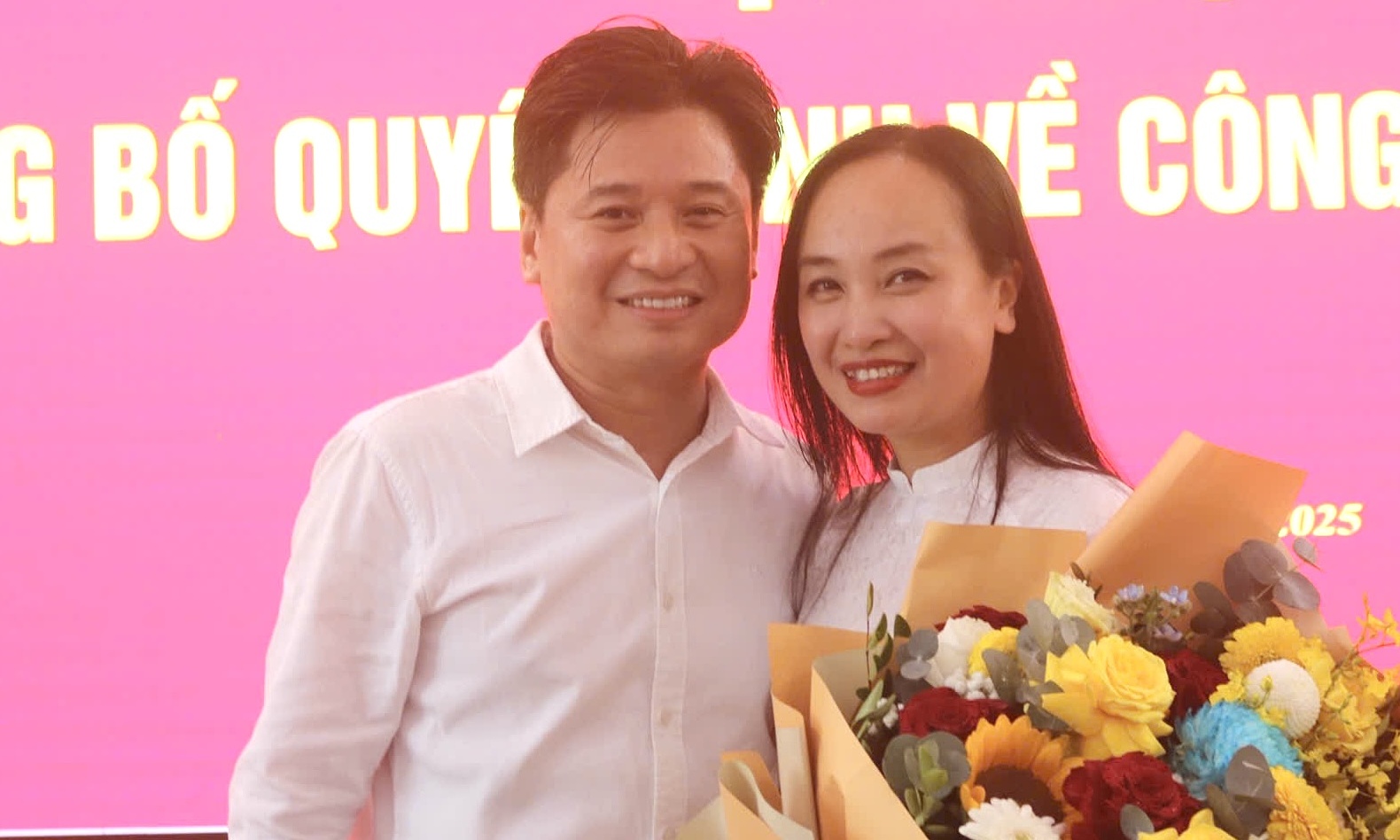 Thu Huyen with her husband, singer Tan Minh, at the appointment ceremony. Photo: Provided by the artist