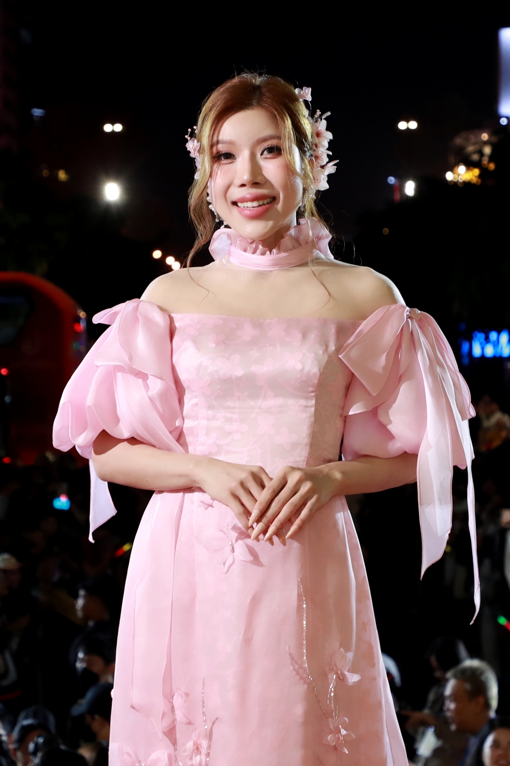 Singer Trang Phap chose a pastel pink outfit adorned with 3D floral patterns for the red carpet at the Ho Chi Minh City Opera House. She won Song of the Year for "Mai la nguoi Viet Nam". |