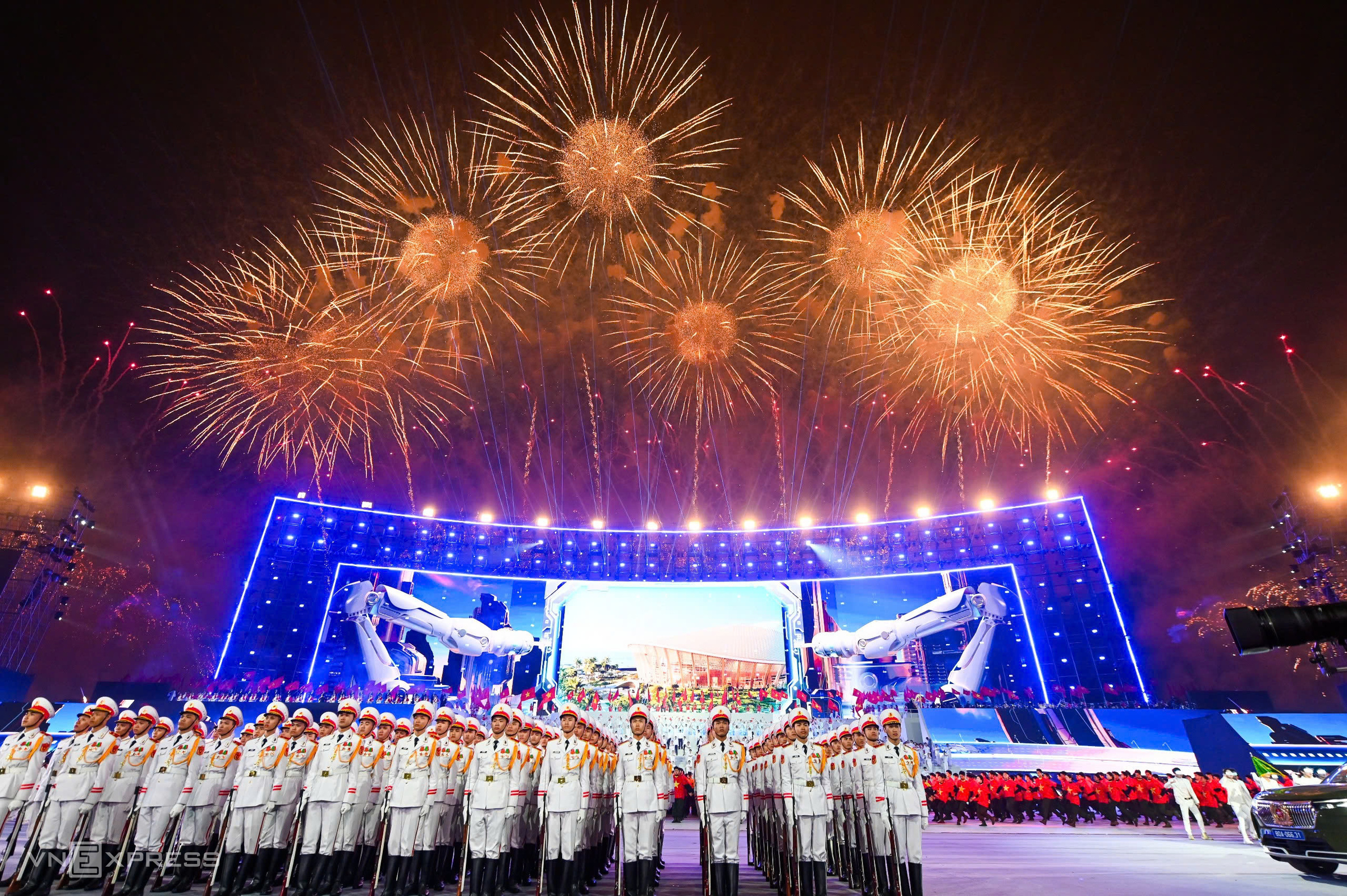 The "Under the Party's Glorious Flag" art night on the evening of 23/1 celebrated the success of the Communist Party of Vietnam's 14th National Congress and marked the Party's 96th anniversary (3/2/1930). This two-hour program brought together a large force of artists and performers, recreating the nation's history and affirming the country's confidence and aspiration to thrive. Each performance was elaborately staged with hundreds of artists and soldiers, harmoniously blending music, dance, and projection technology.