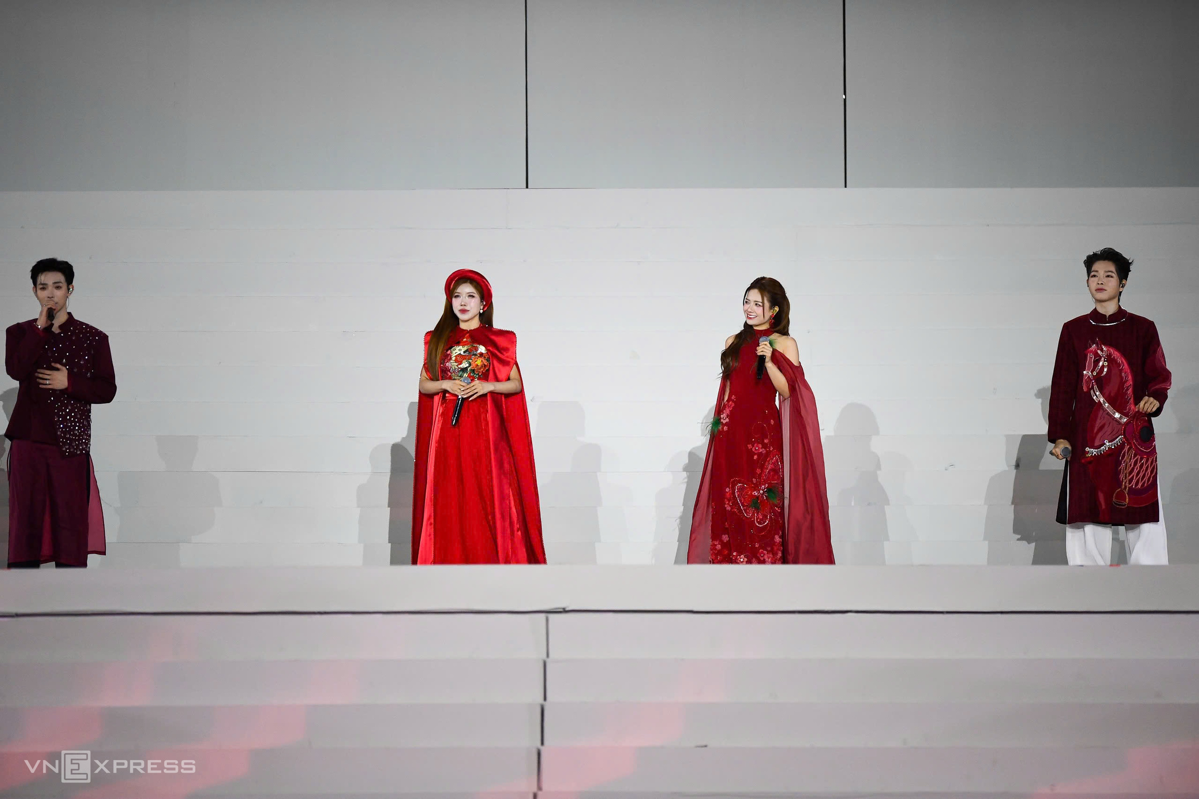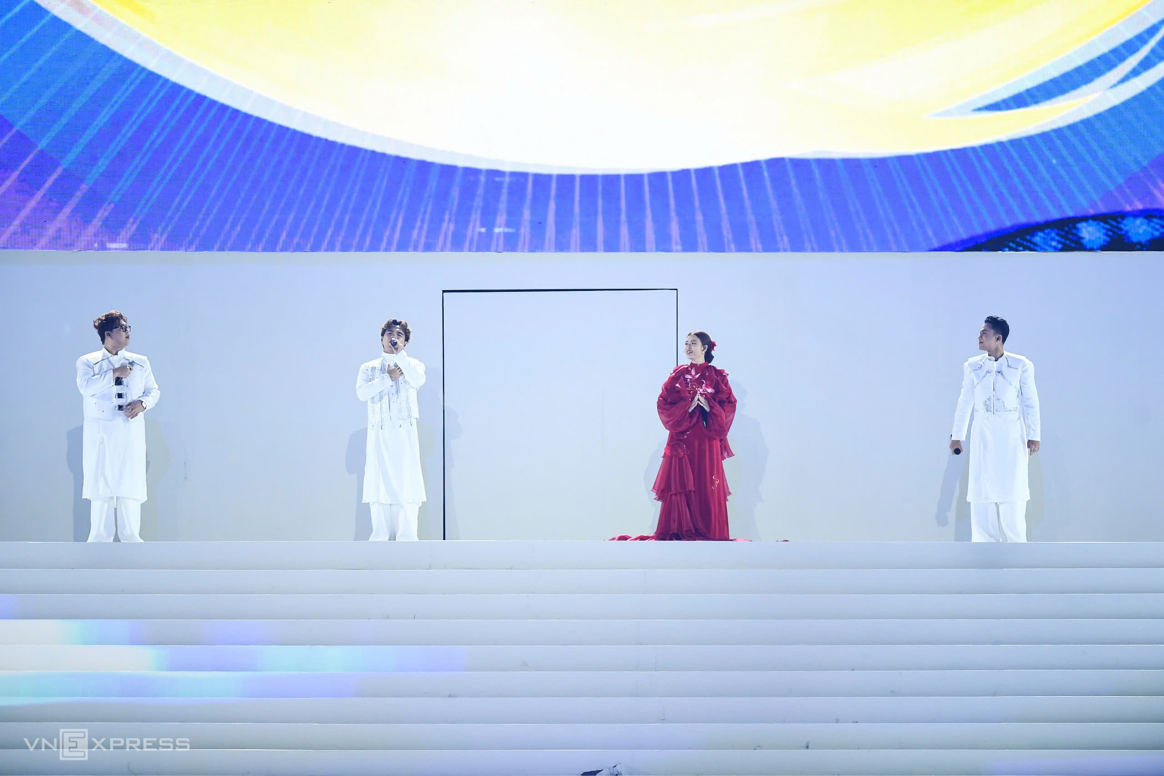 From left: Erik, Trang Phap, Duong Hoang Yen, Duc Phuc brought a modern, energetic atmosphere with the song "Vietnam Quintessence" (by musician Nguyen Hai Phong). |