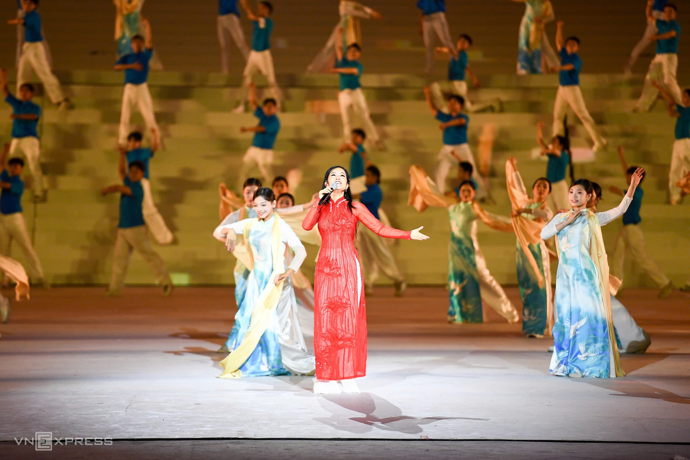 The image of the red flag with a yellow star was repeated, becoming a visual highlight connecting the performances and a symbol of national spirit.