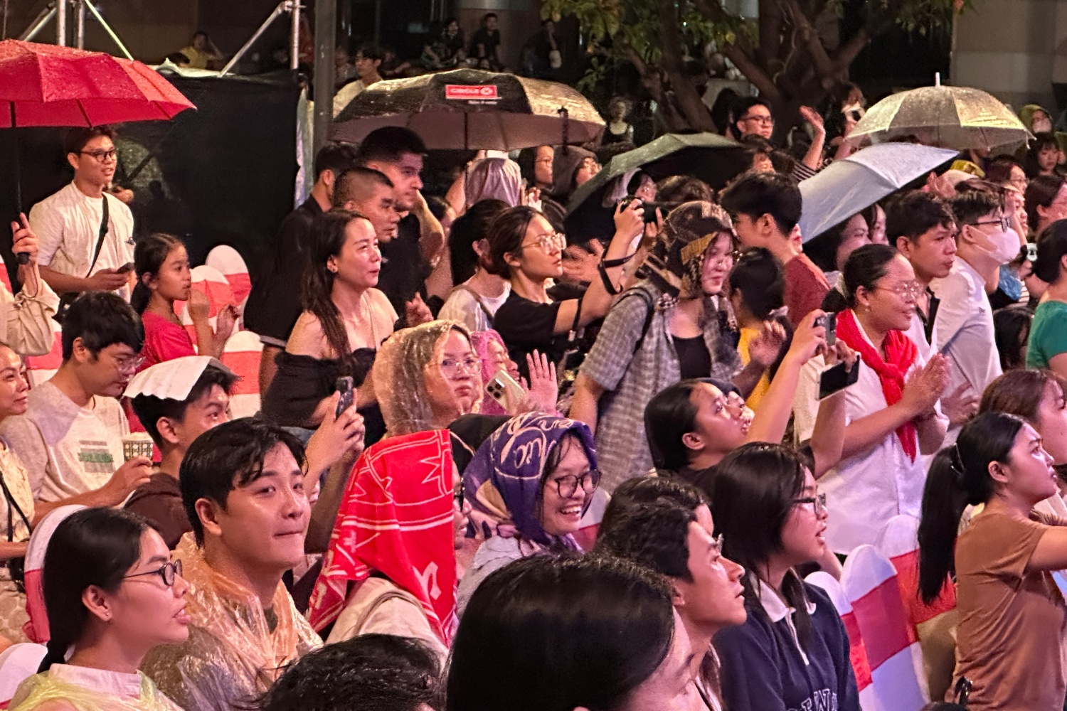 Audience waits in the rain to meet the 'Red Rain' film crew. Photo: Mai Nhat |