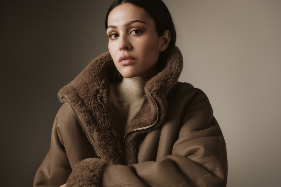 For womenswear, Boss focuses on designs that can accompany women from day to night. One highlight is the luxurious shearling coat worn by American model Amelia Gray. The design features warm brown Nappa leather in a youthful cropped silhouette, easily incorporated into everyday style.