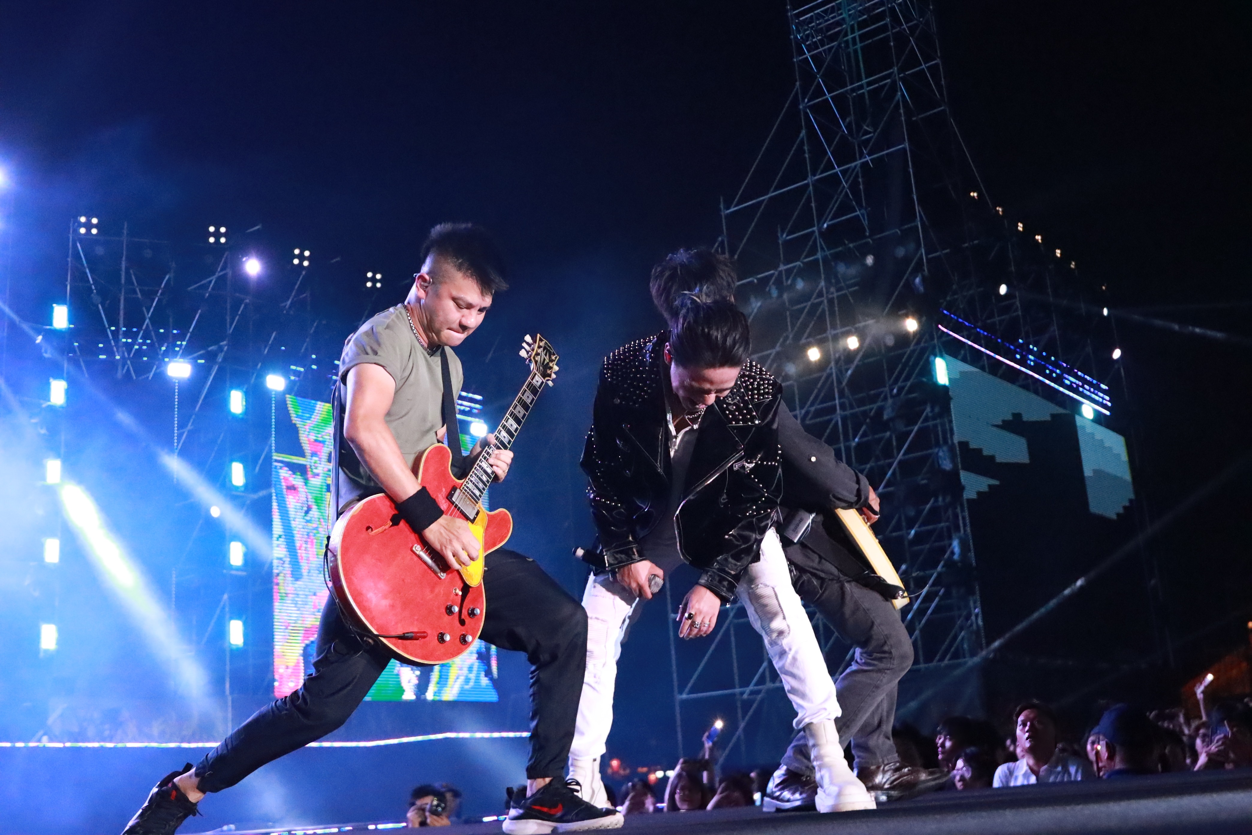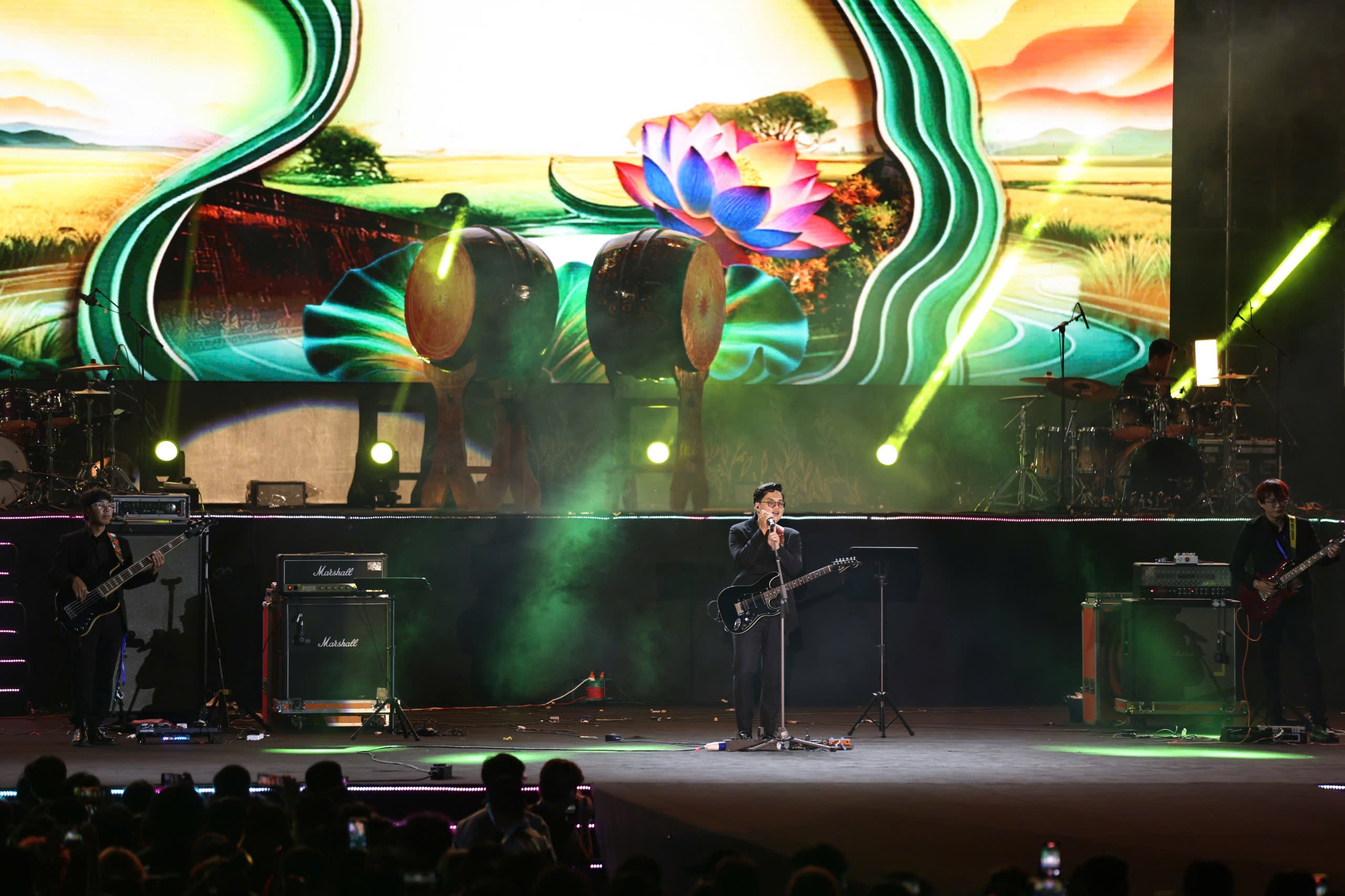 The Flob, an indie rock band from TP HCM, interacted with the audience. Tens of thousands sang along to the melodies of "Khat Vong Tuoi Tre" (composed by Vu Hoang) and "Bai Ca Dat Phuong Nam" (composed by Lu Nhat Vu). Photo: Organizers