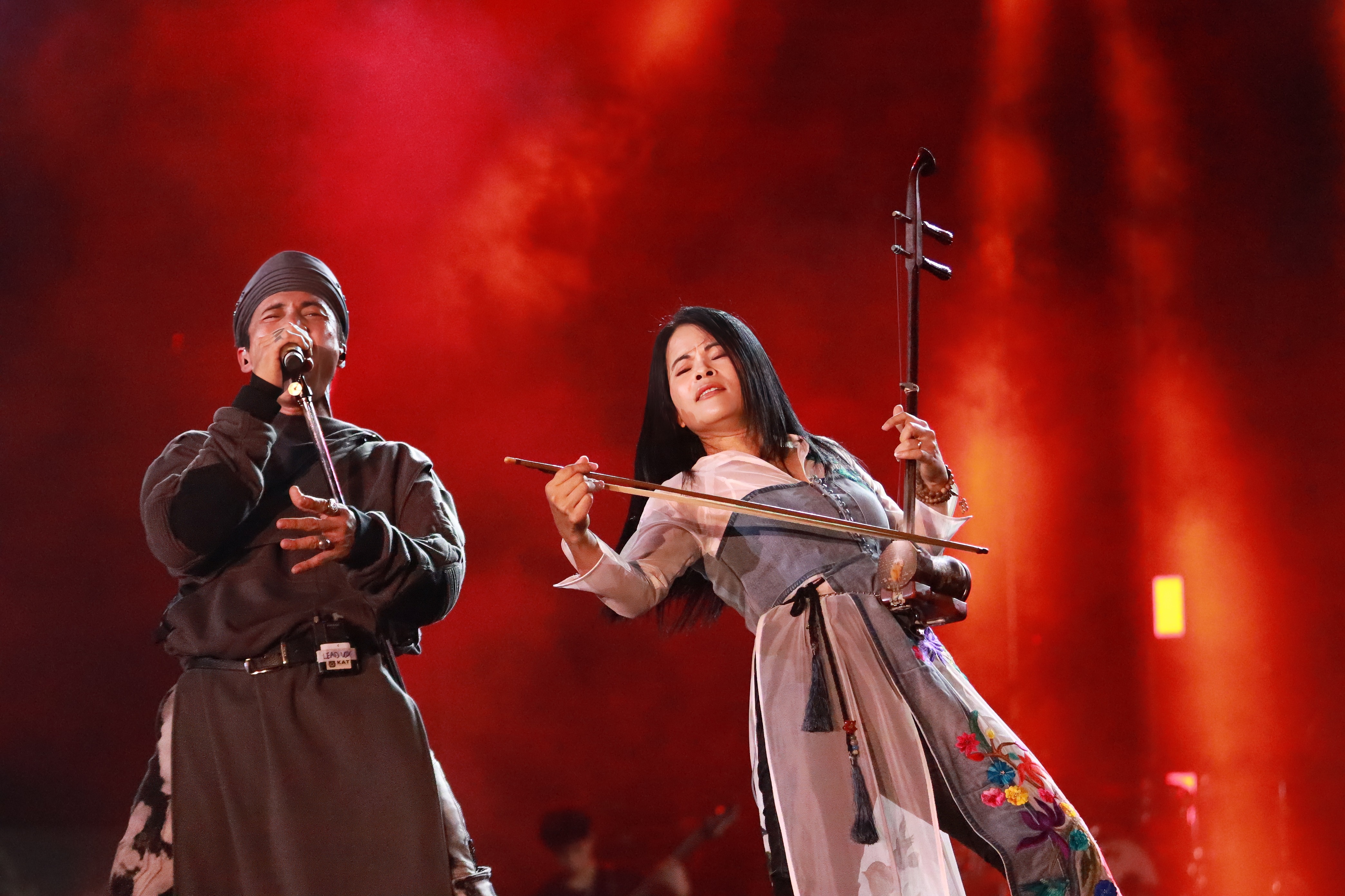 The program featured several segments combining rock music with traditional instruments. MC Thai Thuy Linh commented, "Rock isn't just about screaming and roaring, it can also be graceful and gentle." Photo: Organizers