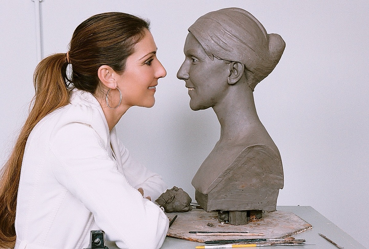 Celine Dion poses next to her unfinished wax figure at the Grevin museum, Paris, France in 2005. |