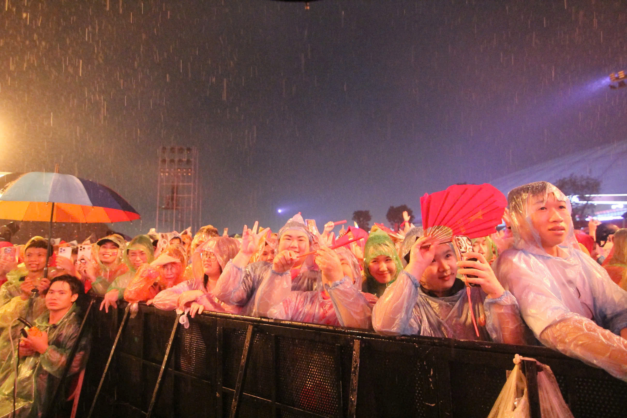 Many audience members wear raincoats while watching the "Viet Nam trong toi" concert. Photo provided by the organizers.