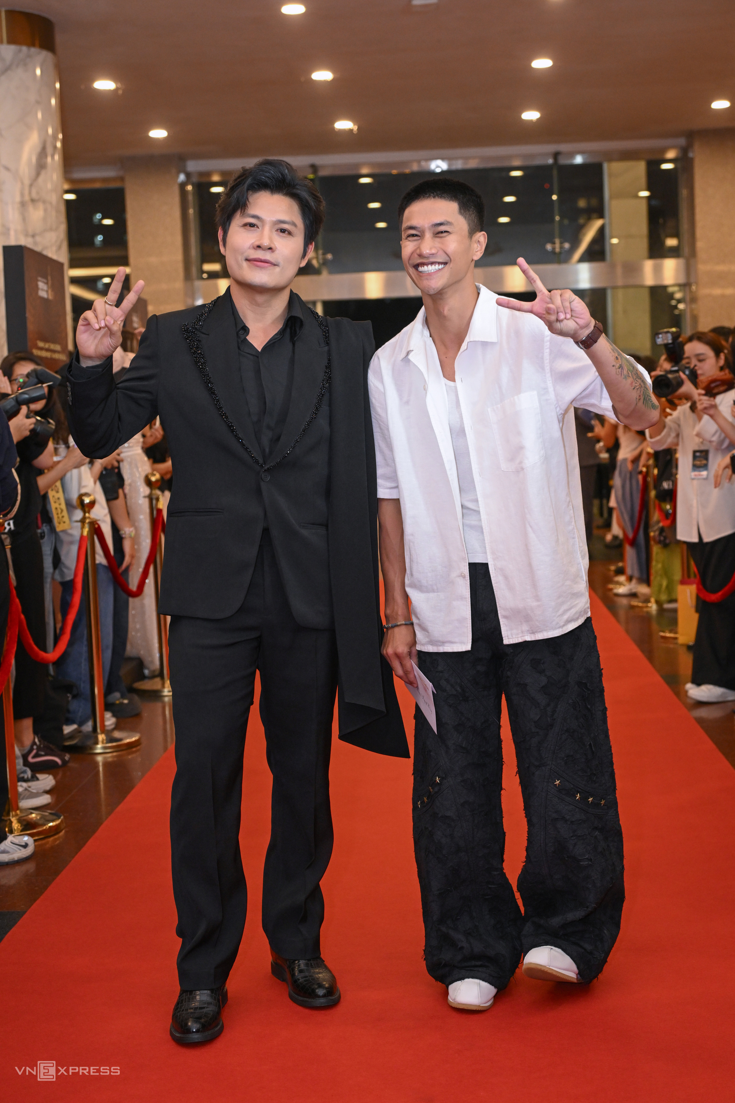 Musician Nguyen Van Chung (left) appeared alongside Nguyen Hung. Both were nominated for Musician of the Year for their patriotic songs: "Viet tiep cau chuyen hoa binh" and "Con gi dep hon."