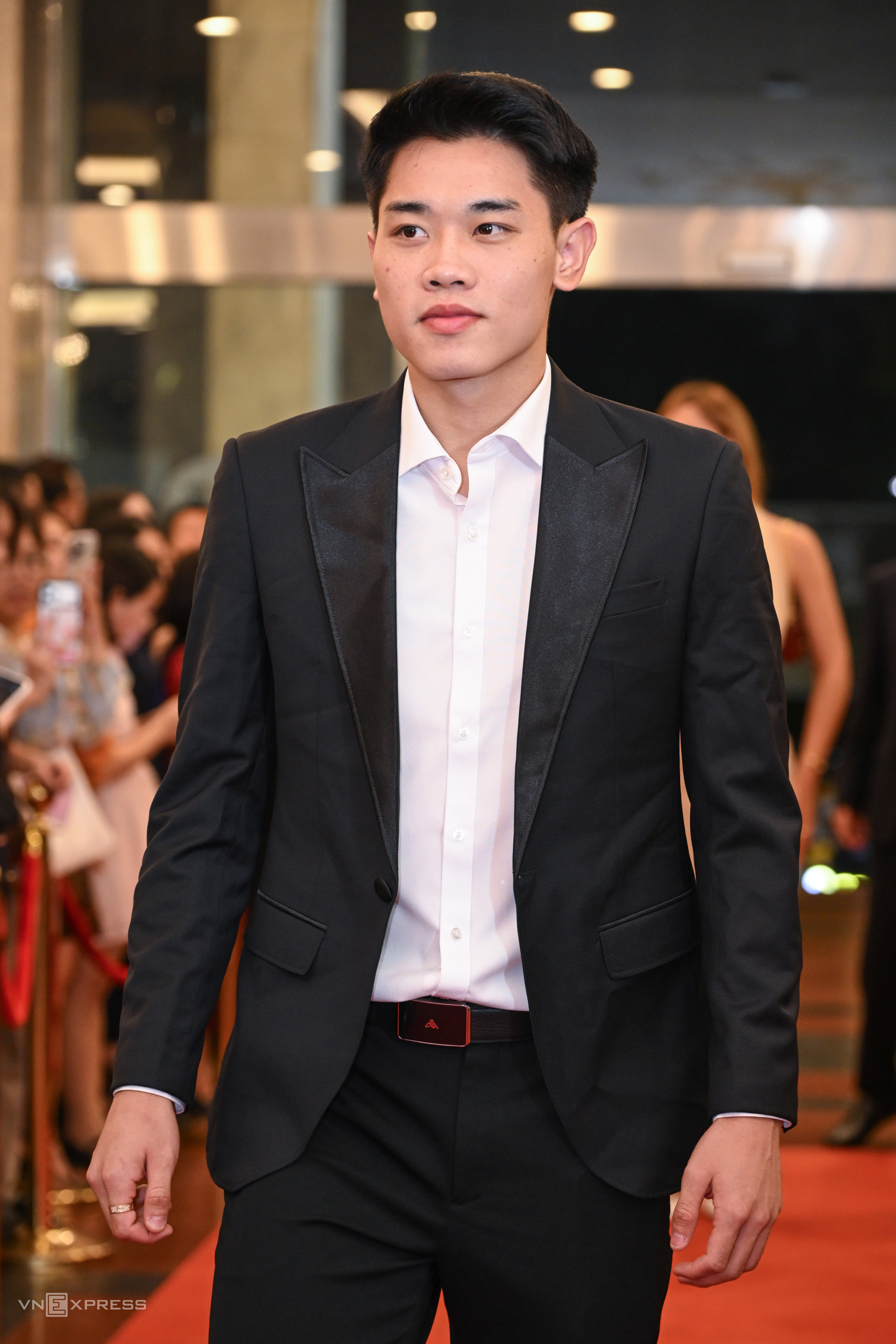The 22-year-old forward, Dinh Bac, wore a suit on the red carpet, greeted by many fans. He was one of three nominees for the Sports Face of the Year category at the Cong Hien Awards. Last year, he and his teammates won a gold medal at SEA Games 33, secured the U23 Southeast Asia championship, claimed the ASEAN Cup 2024, and earned the Vietnam Silver Ball title.