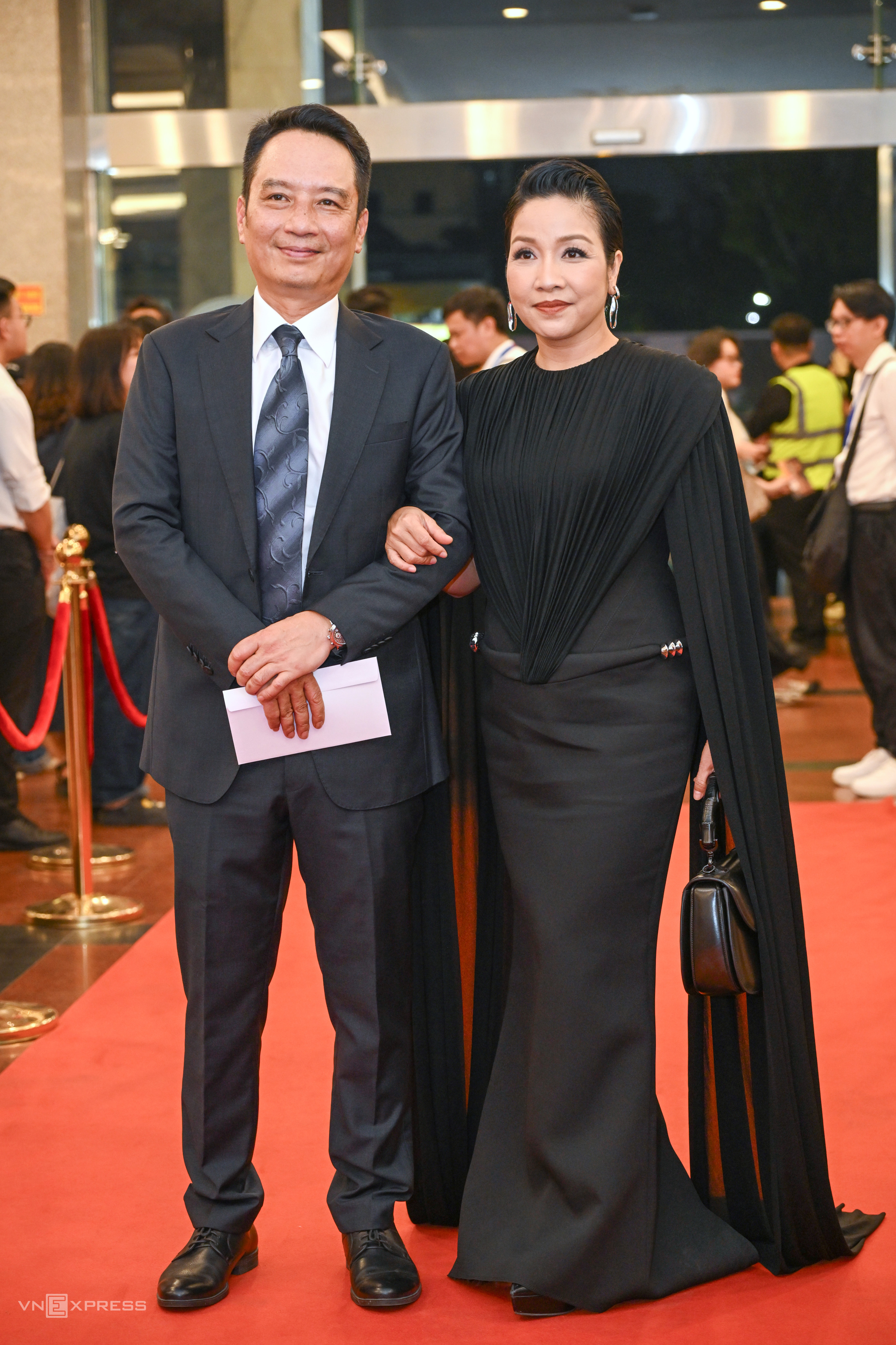 Musician Anh Quan and singer My Linh, husband and wife, wore matching black outfits.