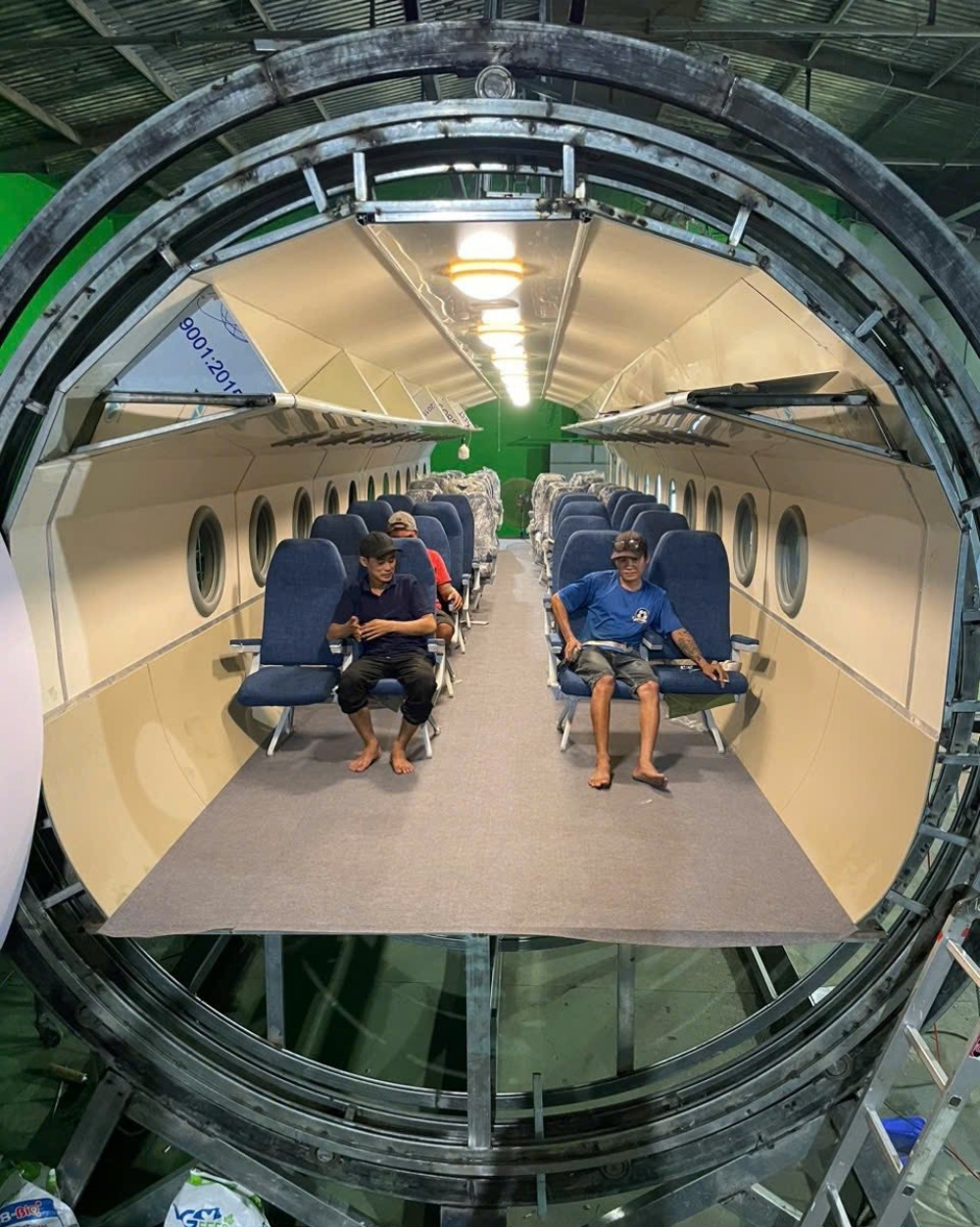 The airplane cabin model was built to be able to shake. Photo: Provided by the film crew |