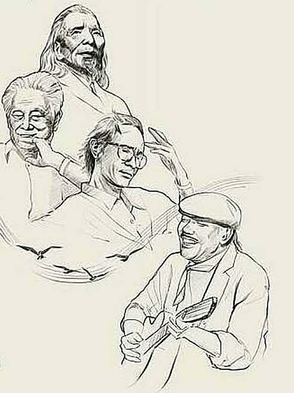 Poster for the "Ve day bon canh chim troi" program, honoring musicians Van Cao, Pham Duy, Trinh Cong Son, Tran Tien. Photo: Ngoc Viet |
