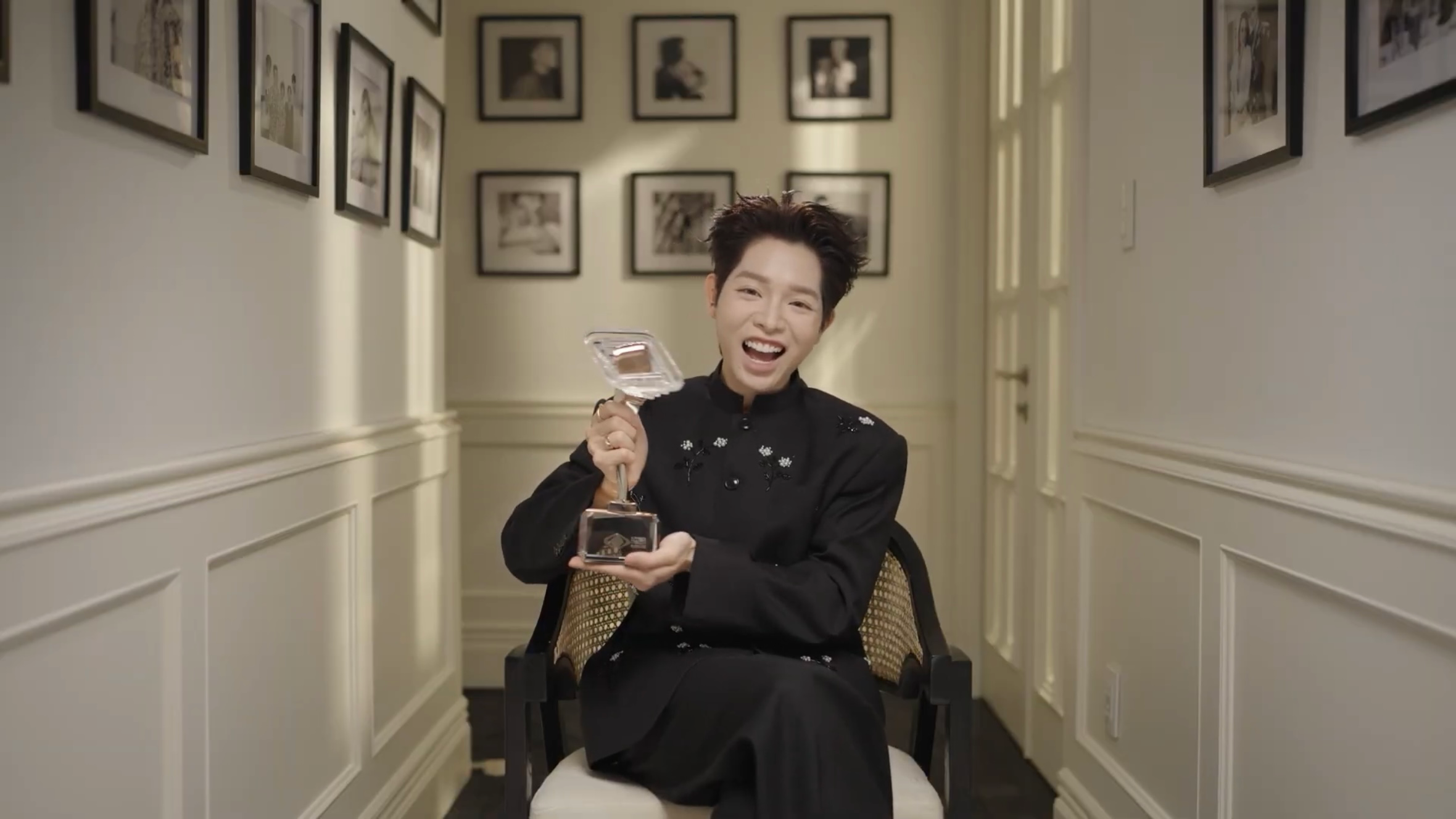 Duc Phuc with the championship trophy as he recounts his journey to conquer Intervision in the film.