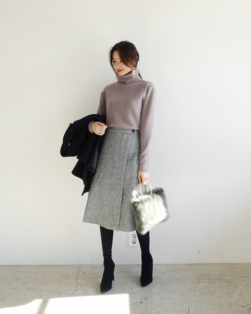 Third, when wearing midi skirts, avoid ankle boots. They create a disjointed look, breaking the visual line and making you appear shorter. Instead, opt for knee-high boots, ensuring the skirt length covers them without revealing the top of the boot. |