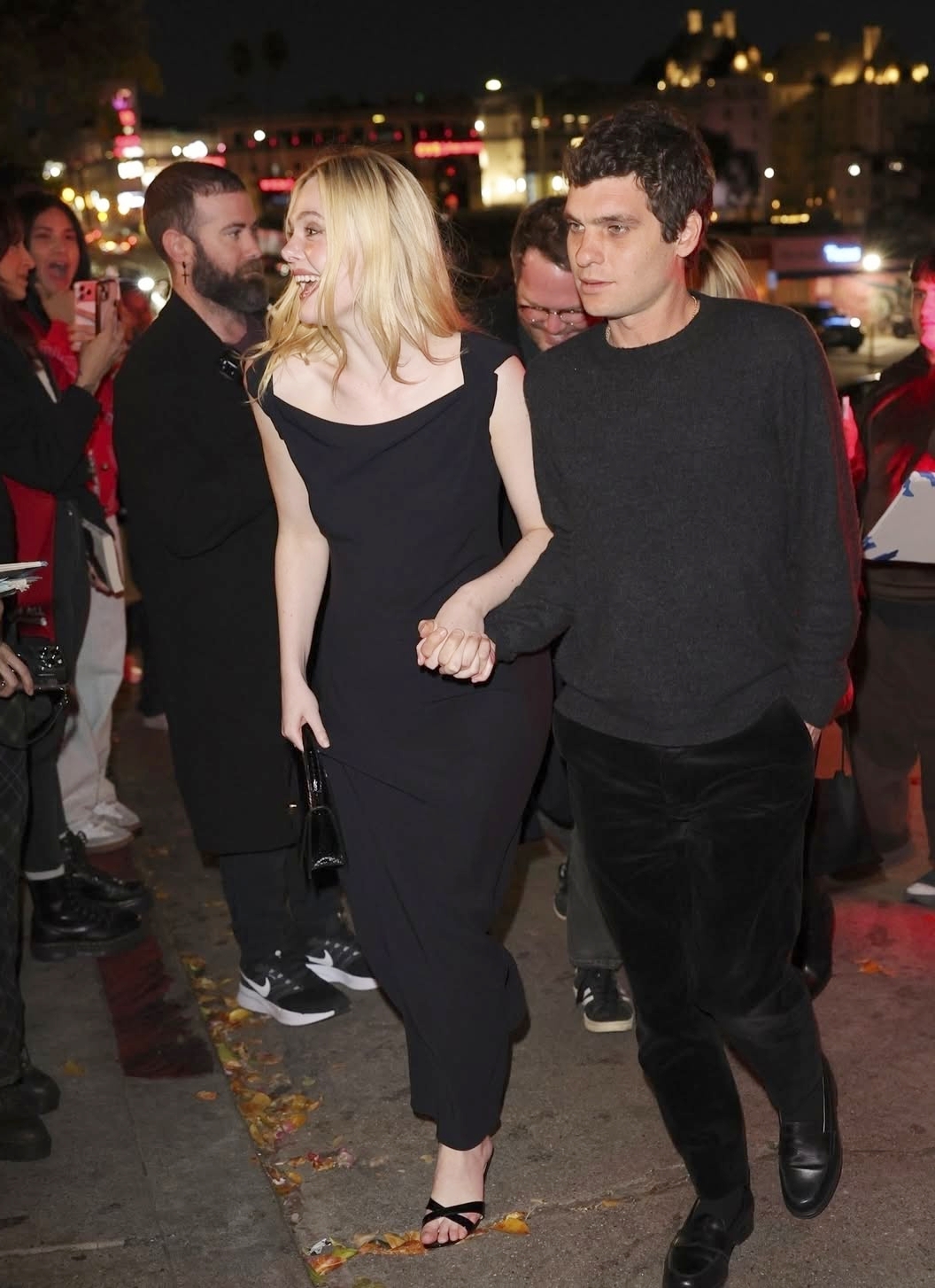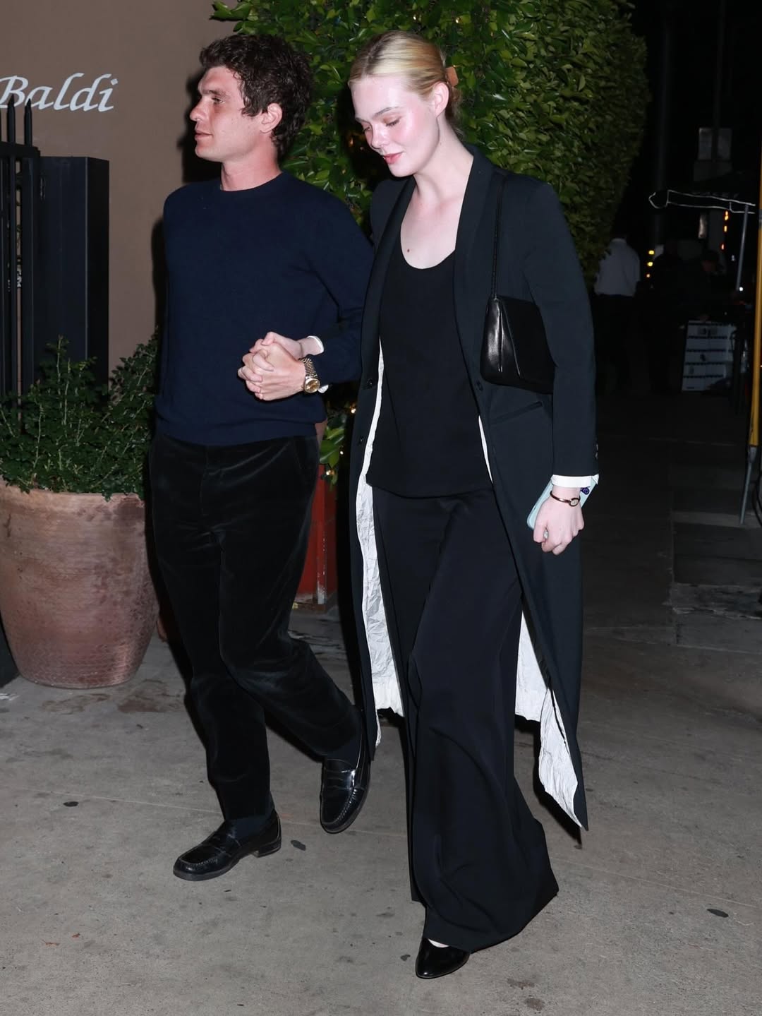 According to Instyle, when dating, both are comfortable expressing their individual styles yet share common ground in spirit and color palettes. For events, Elle often chooses couture, vintage, or sparkling embellished gowns. Gus typically opts for traditional tuxedos, embodying an elegant gentleman's image. In daily life, Elle favors maxi dresses, midi skirts, and long coats, reflecting a soft aesthetic. Her boyfriend often wears simple, basic attire like sweatshirts, jeans, khaki pants, and loafers. *Photo: Backgrid* |