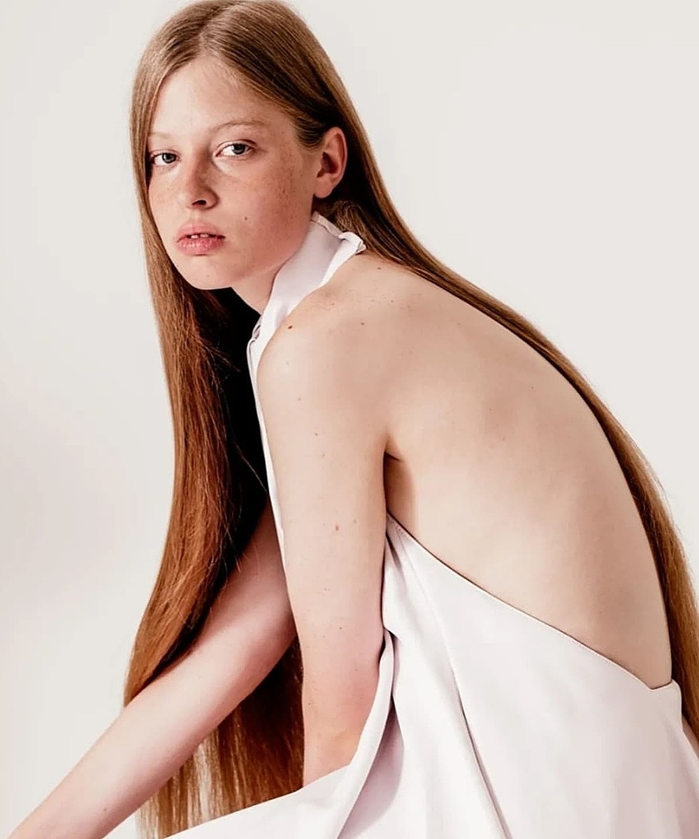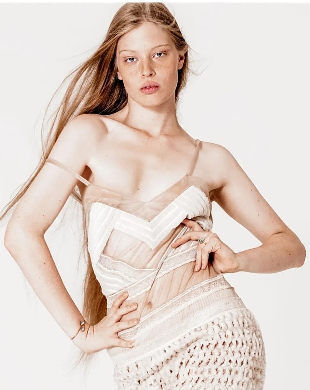 The model wears Miu Miu in Dazed magazine's September issue. Her hair has been compared to Rapunzel's.