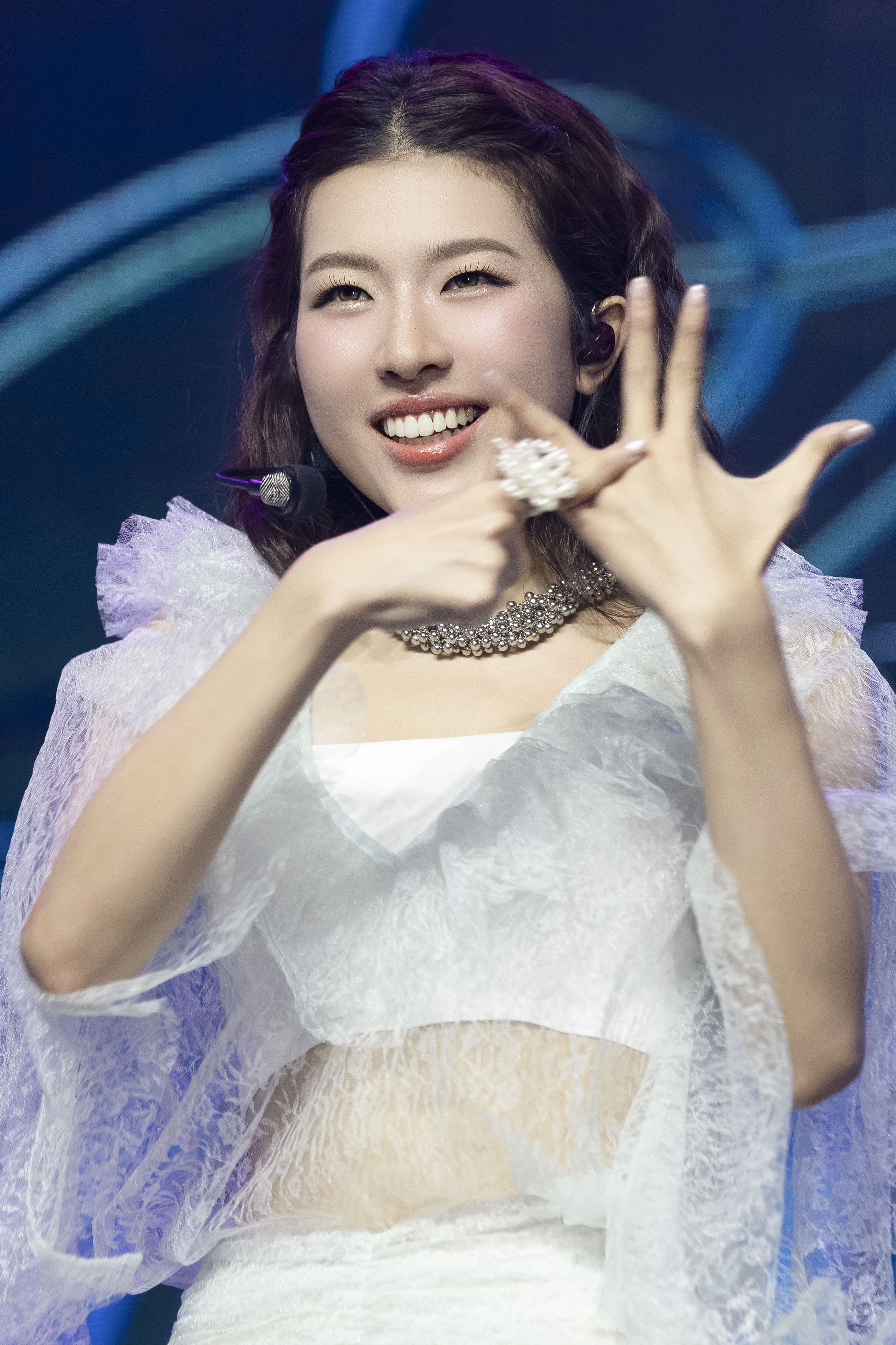 She performed "Duong Gian," the piece she performed at the "Em xinh say hi" finale in August. After two years in showbiz, Lamoon shared, "I'm more open and confident now. The intensity of working in competitions and music programs has made me stronger."