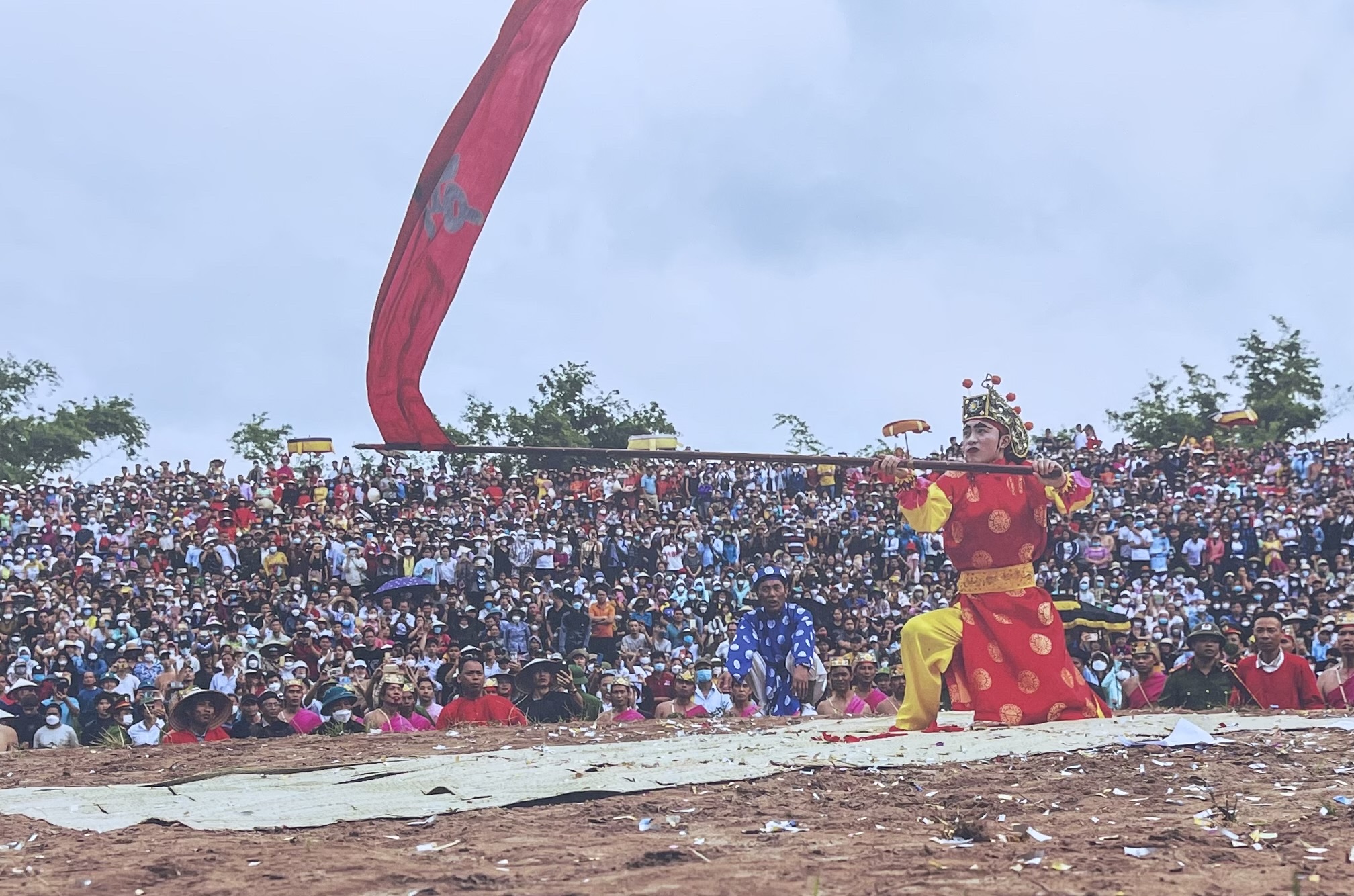 The Do Ong Dam ritual at the Dong Ky firecracker festival, Tu Son ward, Bac Ninh. This event is linked to the legend of Saint Thien Cuong's campaign against the Xich Quy invaders and takes place from the 4th to the 6th day of the Lunar New Year. |